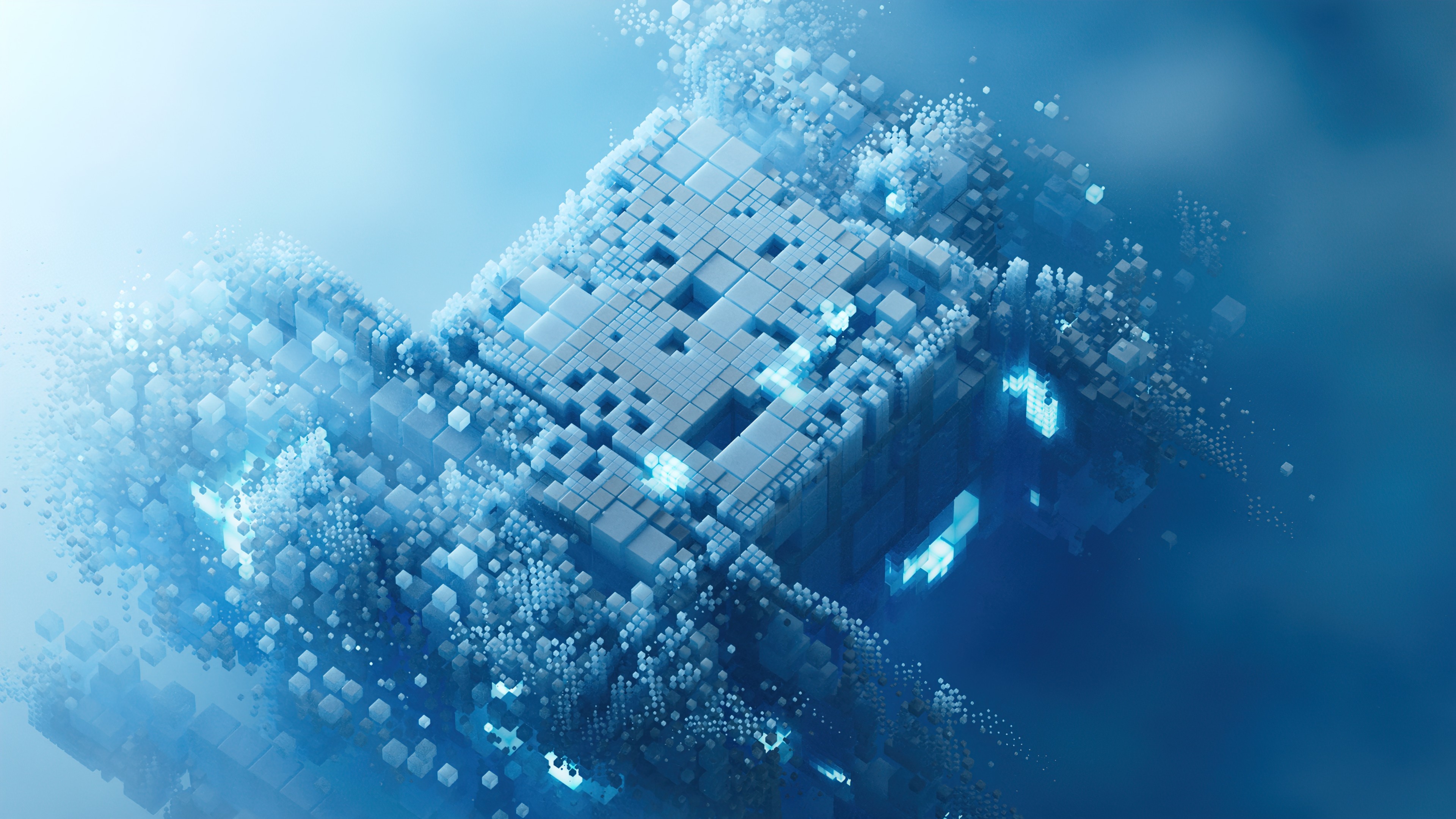Description: A computer generated image of a cube in the air with bubbles and bubbles around it.