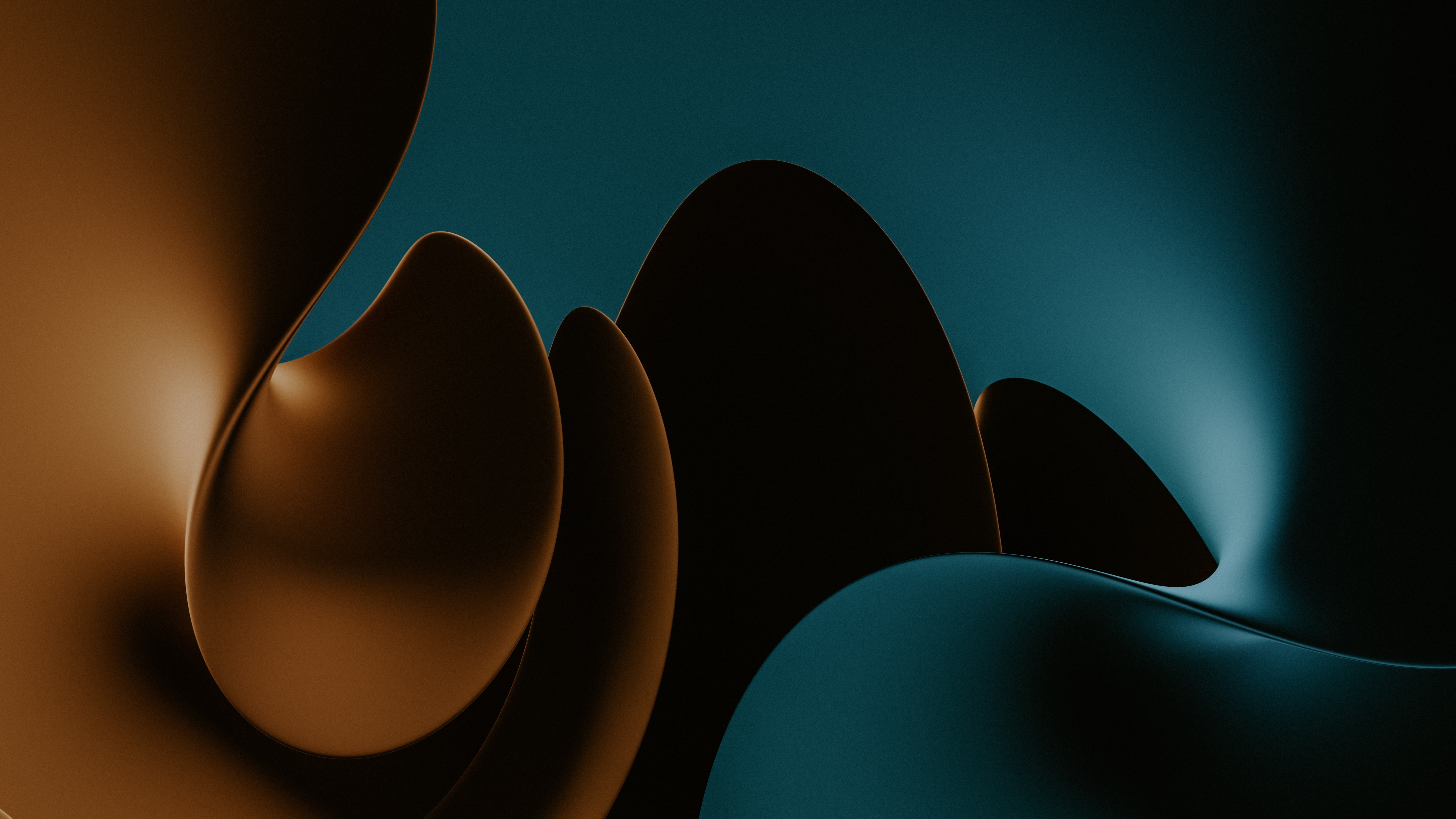 Description: A computer generated image of a curved object in brown and blue tones with a black background and a brown and blue background.