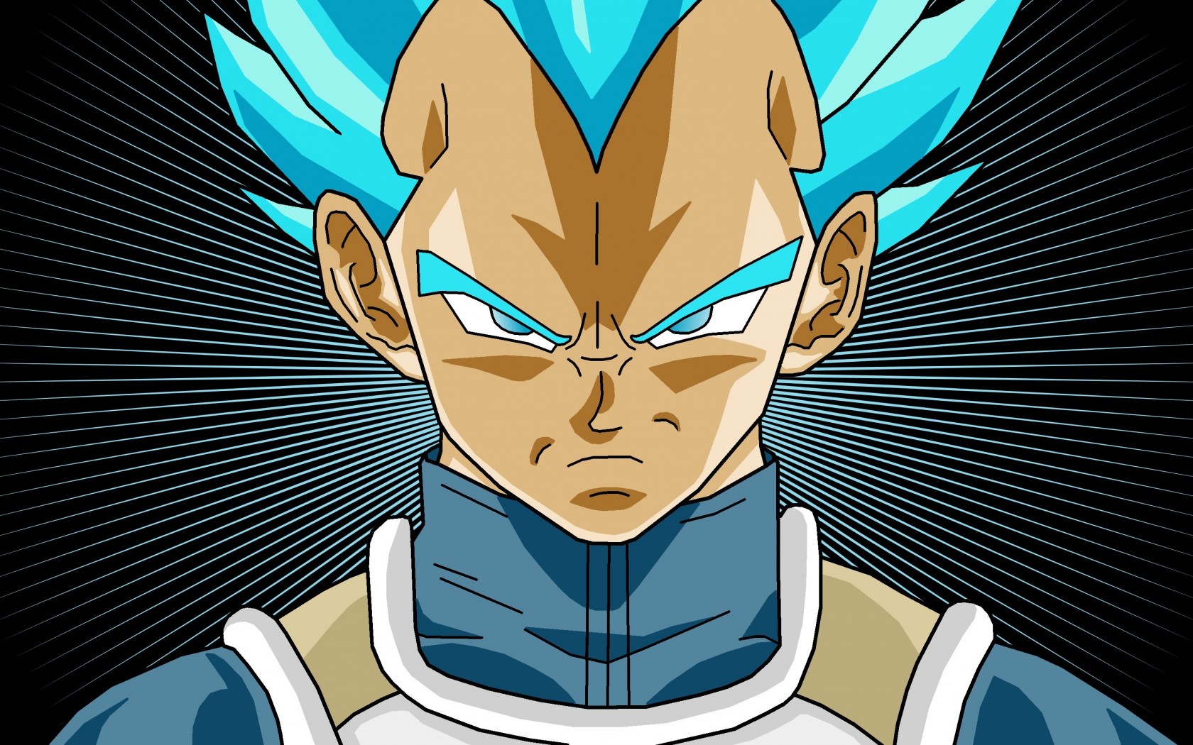 Description: A very cute looking gohan with blue hair and blue eyes and a blue collared shirt on.