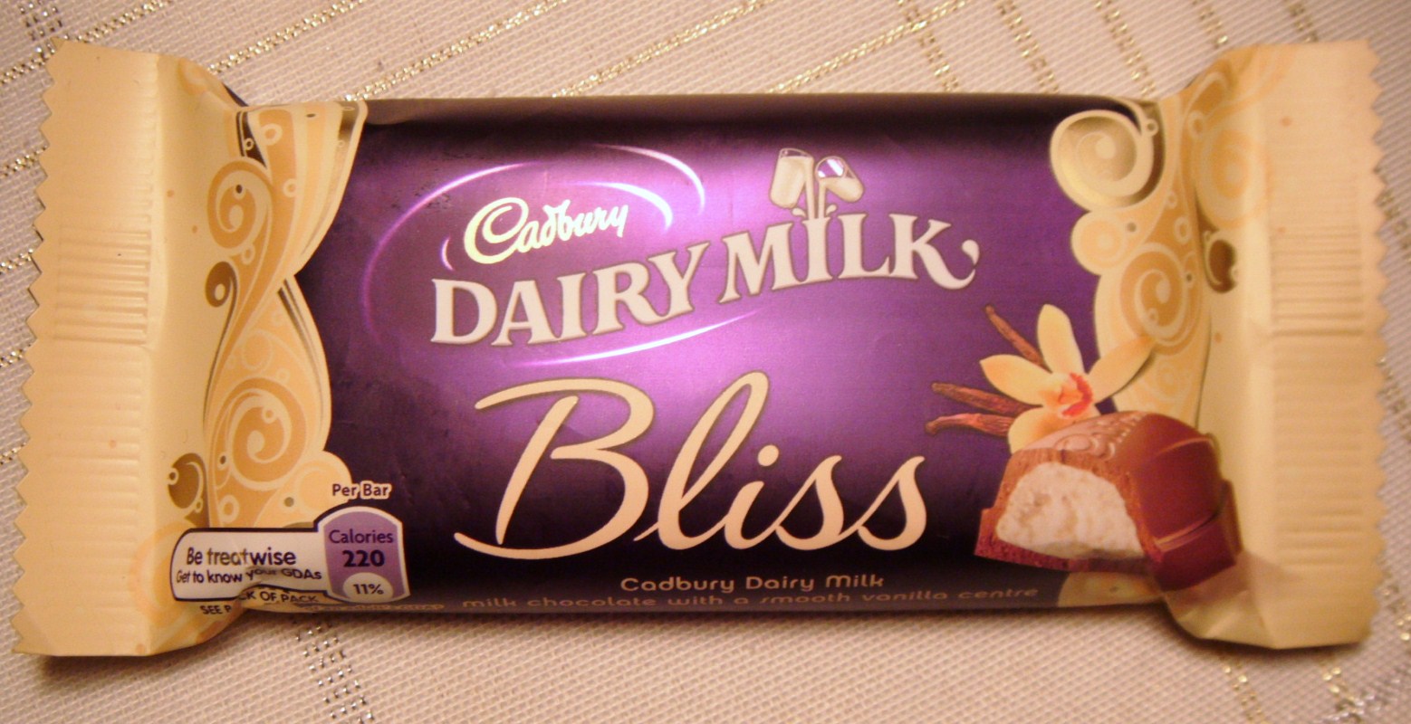 Description: A bar of dairy milk with a chocolate wrapper on top of it on a tableclothed table.