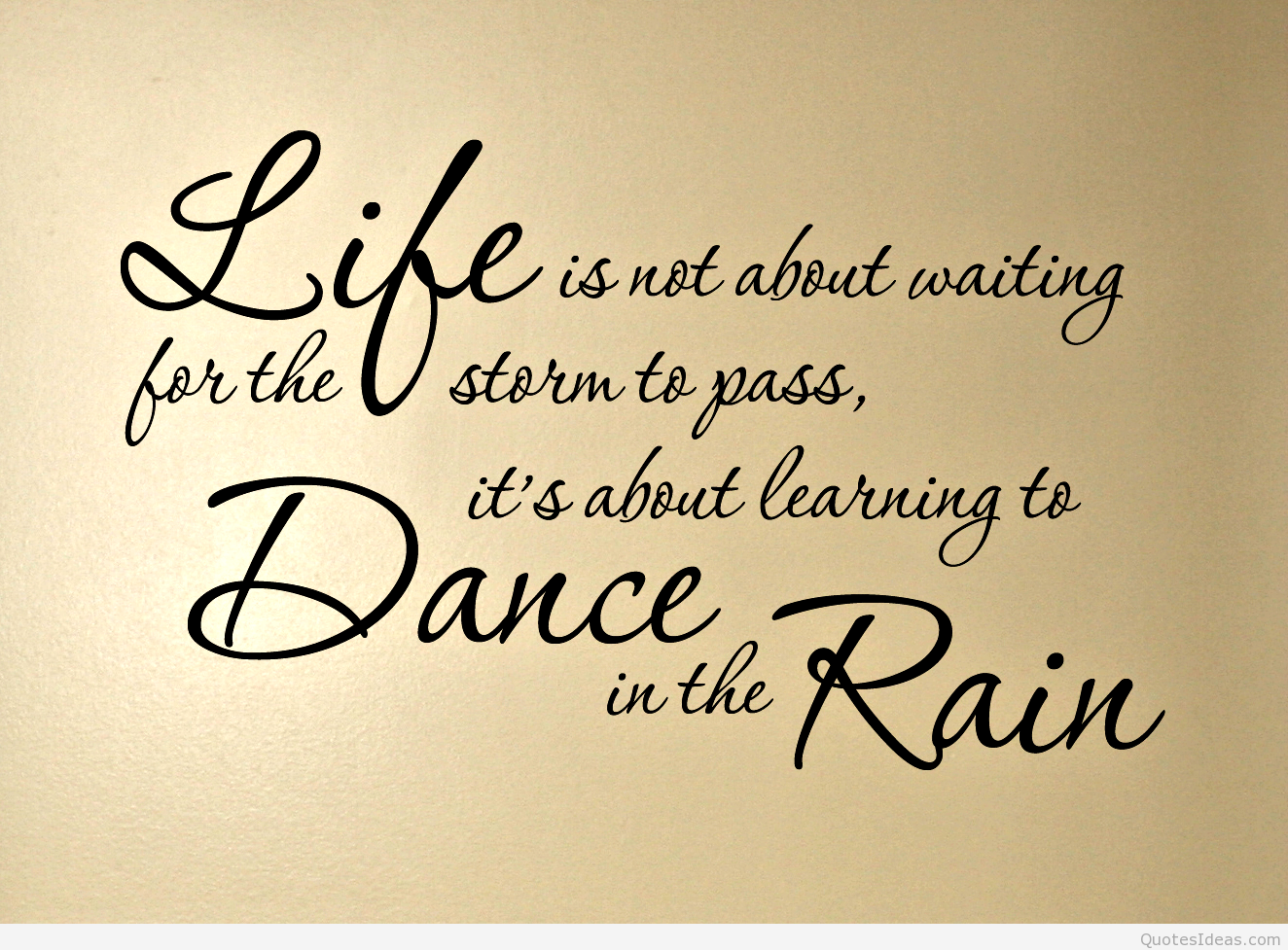Description: A picture of a quote on a wall with a quote on it that says life is not about waiting for the storm to pass.
