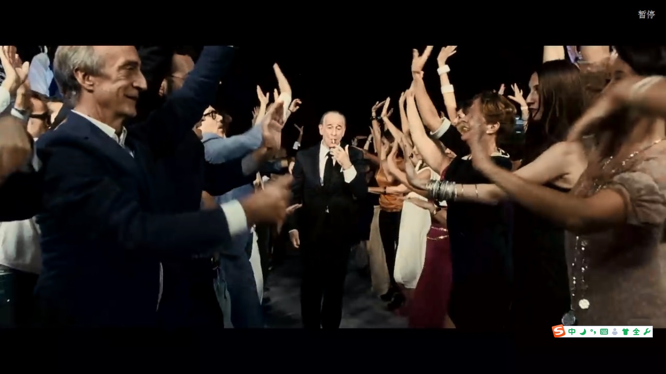 Description: A group of people dancing in a room with their hands up in the air and people in the background.