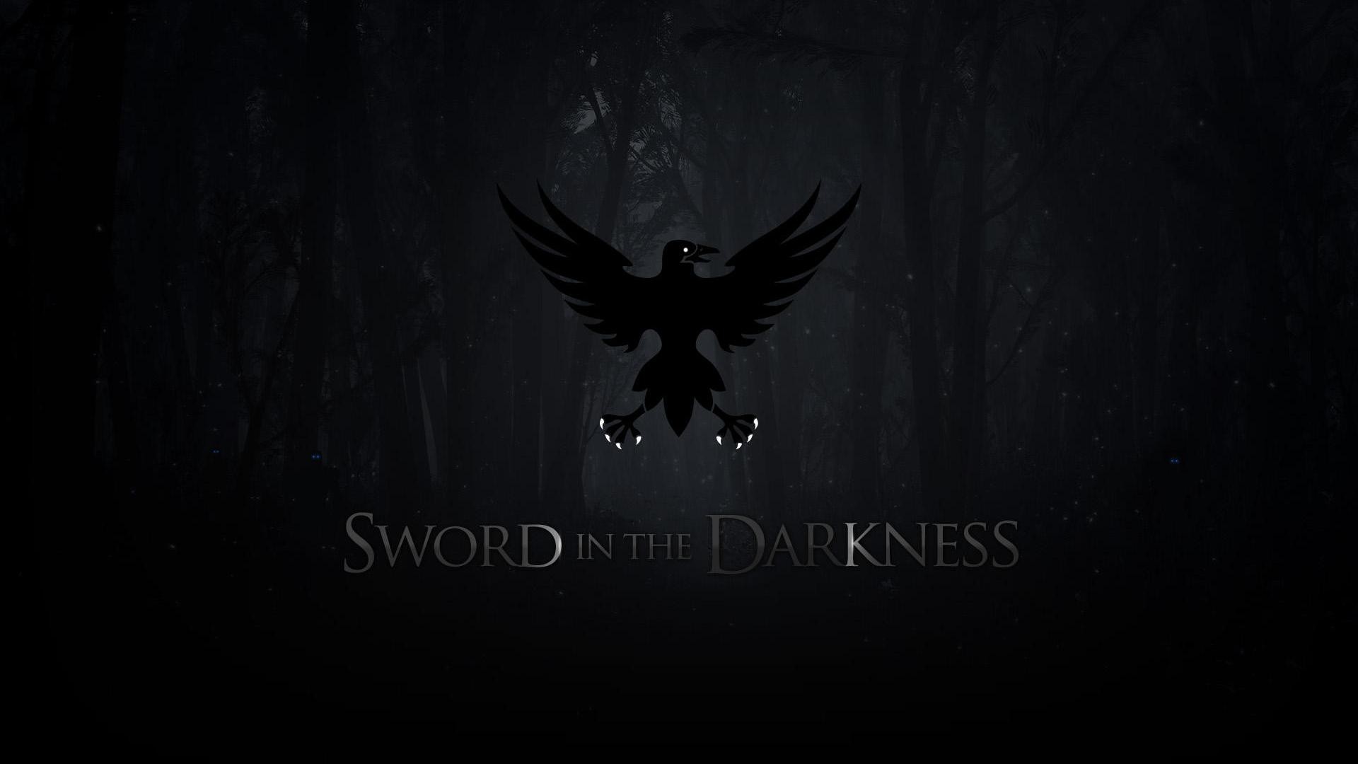 Description: A dark background with a bird on it and the words sword in the darkness above it in the middle of the image.