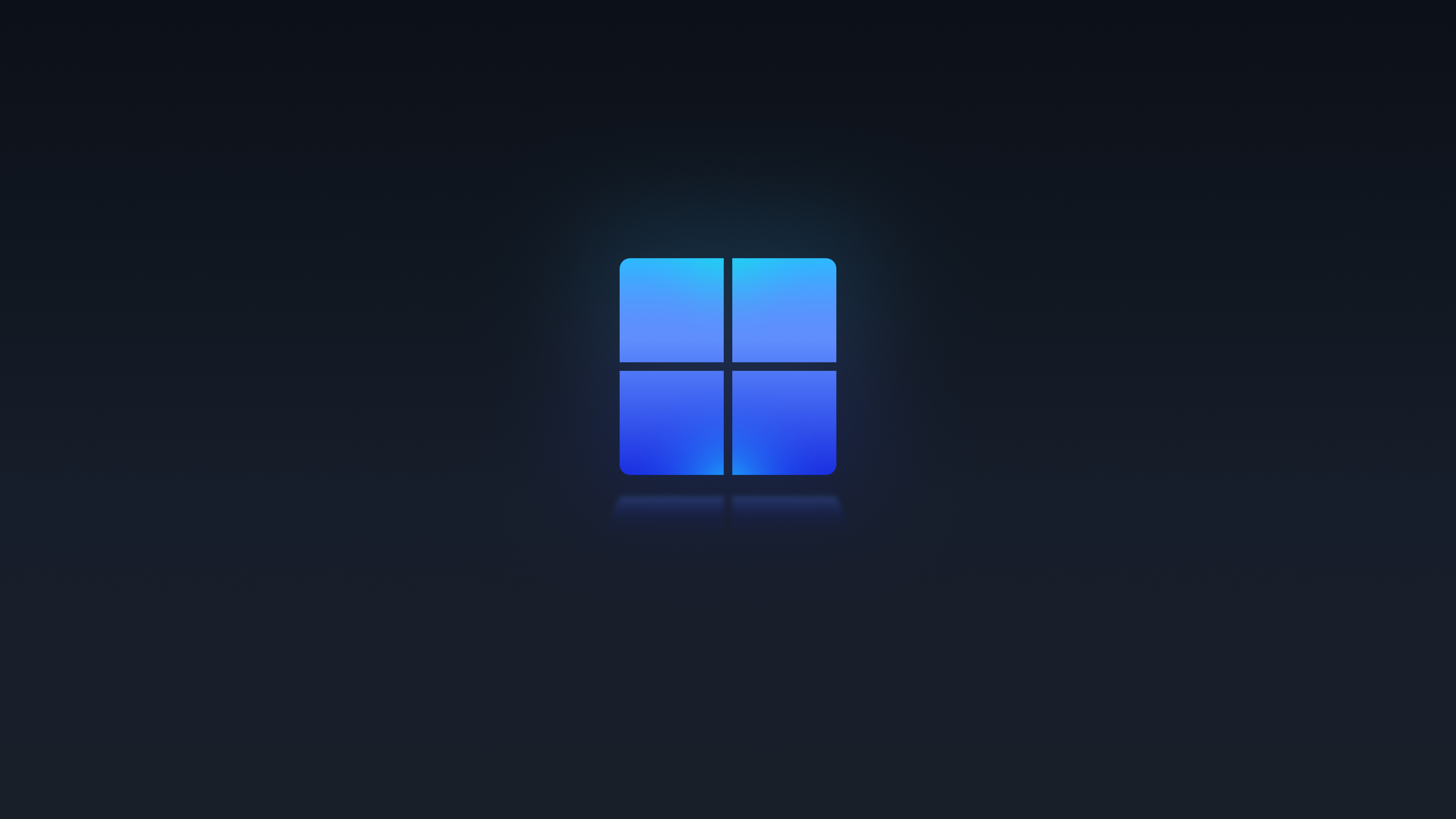 Description: A dark background with a blue window in the middle of it and a reflection of the window on the wall.