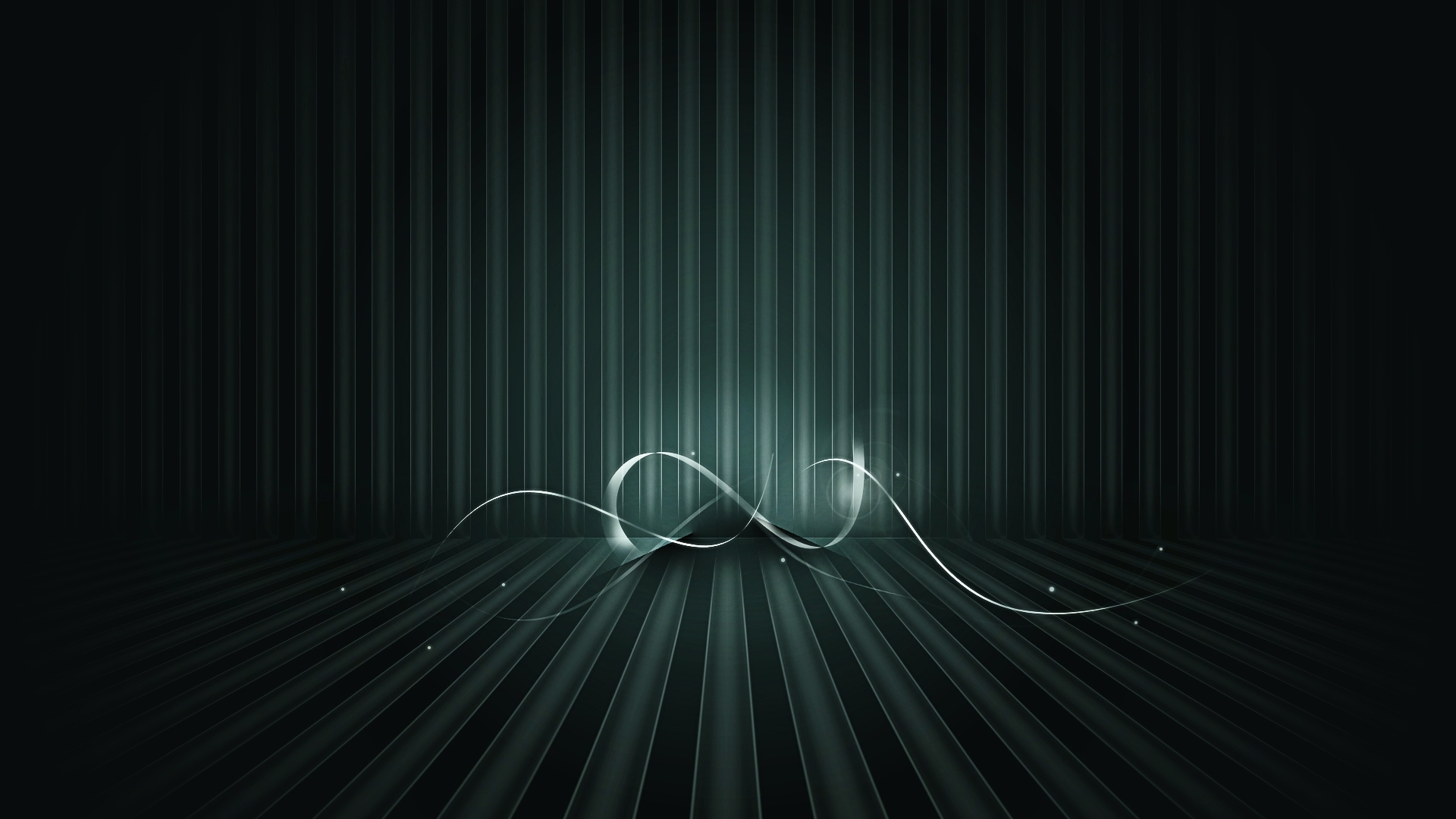 Description: A dark background with a light coming from it and a wave coming out of it on the floor in the middle.