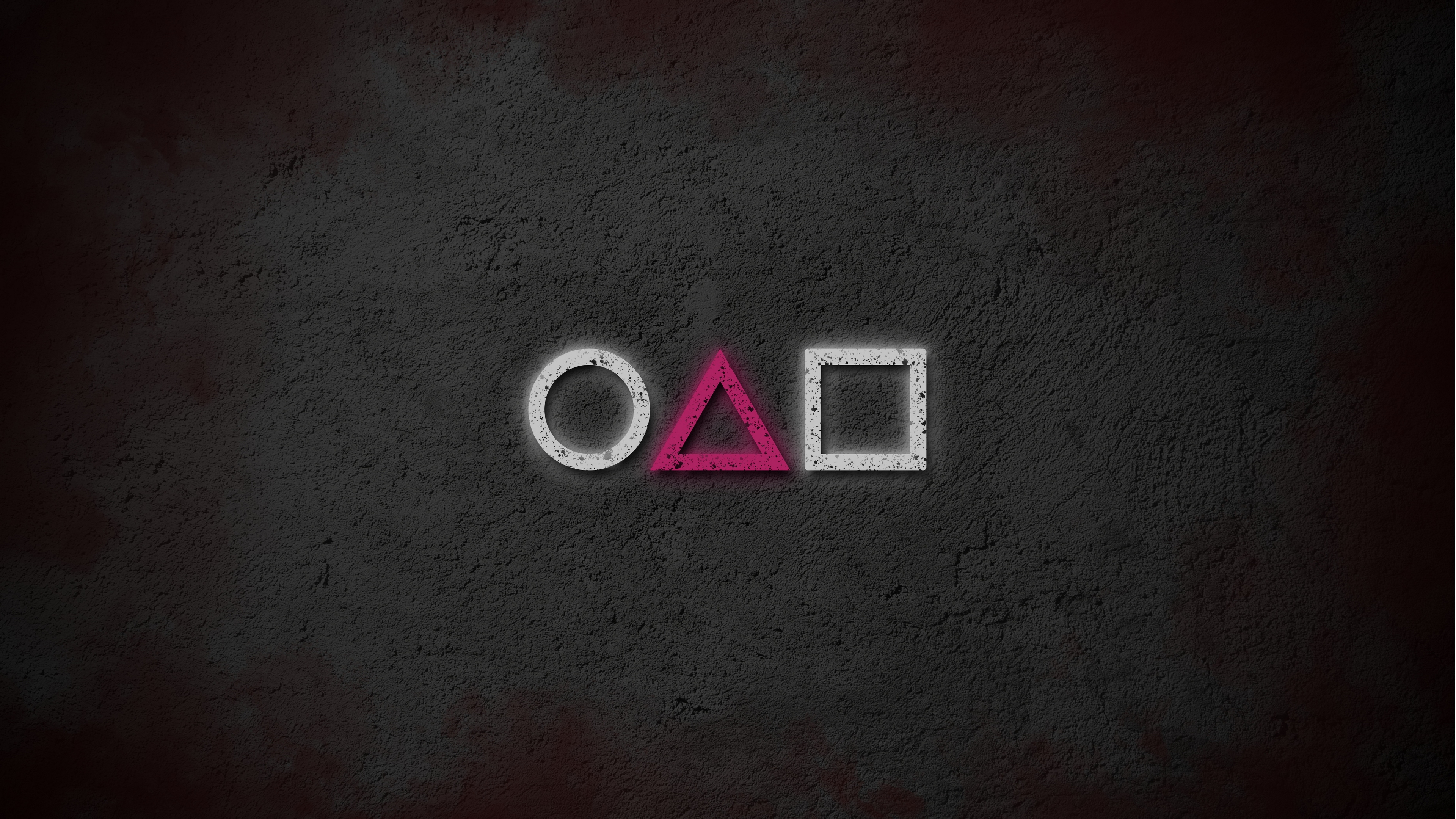 Description: A dark background with a neon pink and white logo on it.