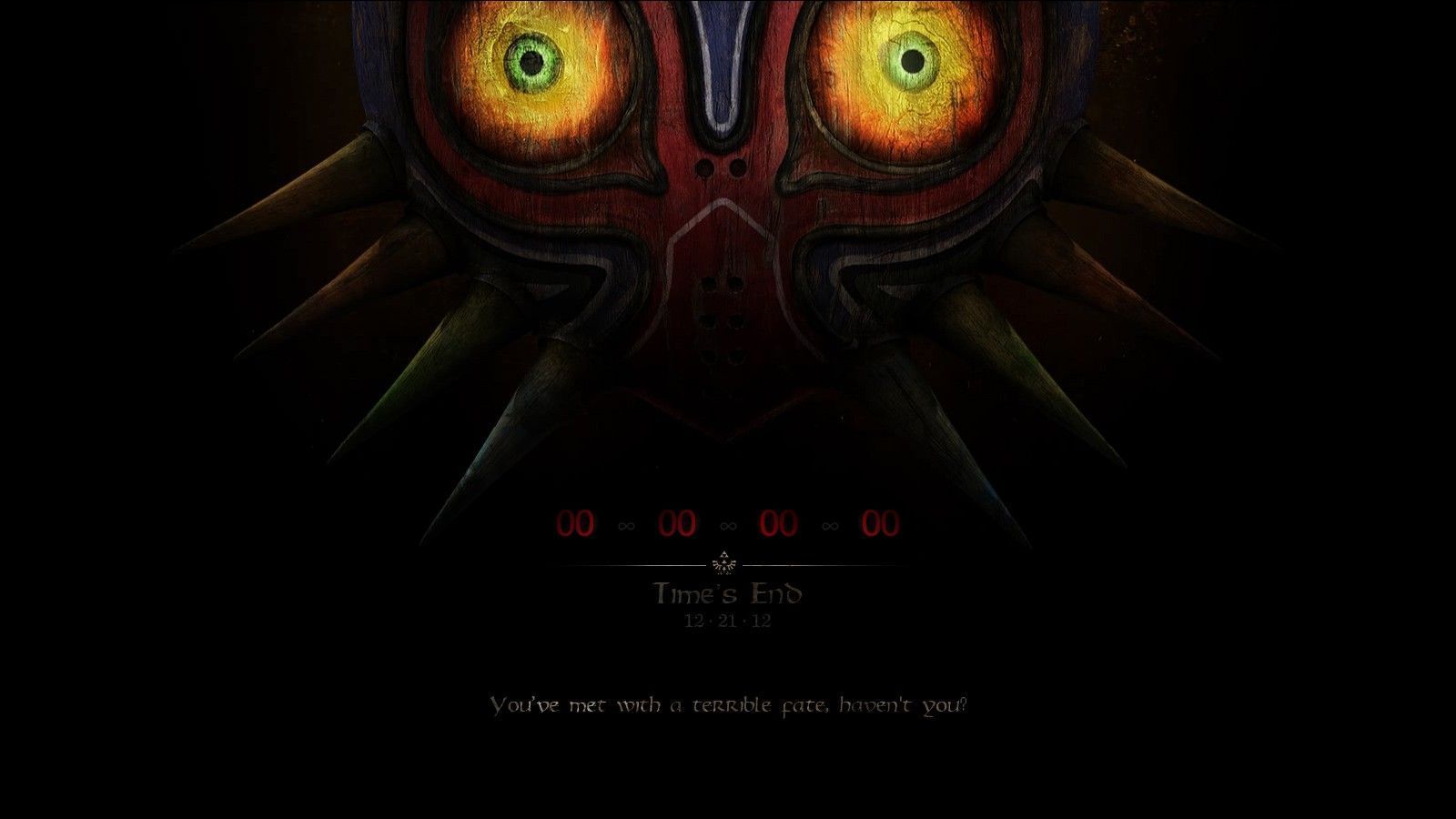 Description: A dark background with a red and yellow face and two green eyes with yellow eyes and two black wings.
