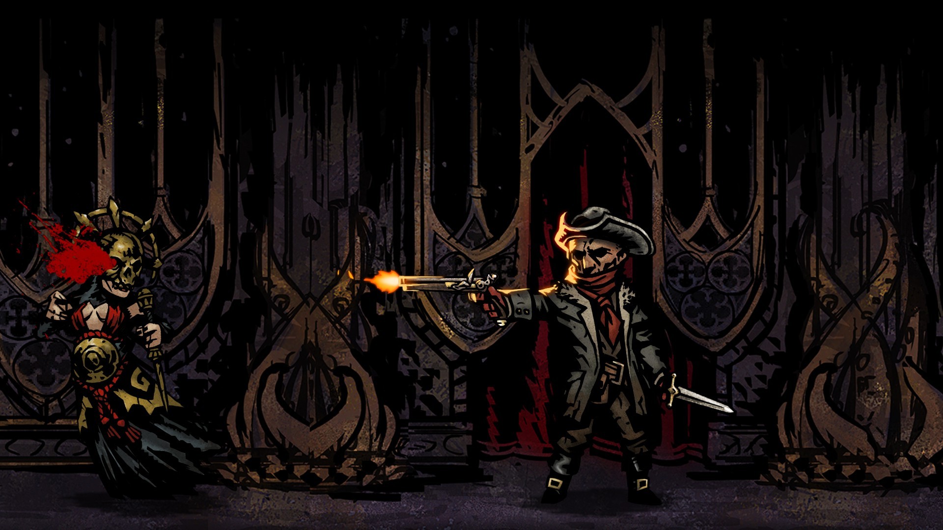 Description: A cartoon of a man with a gun in a dark room with a demon on the wall and a demon on the floor.