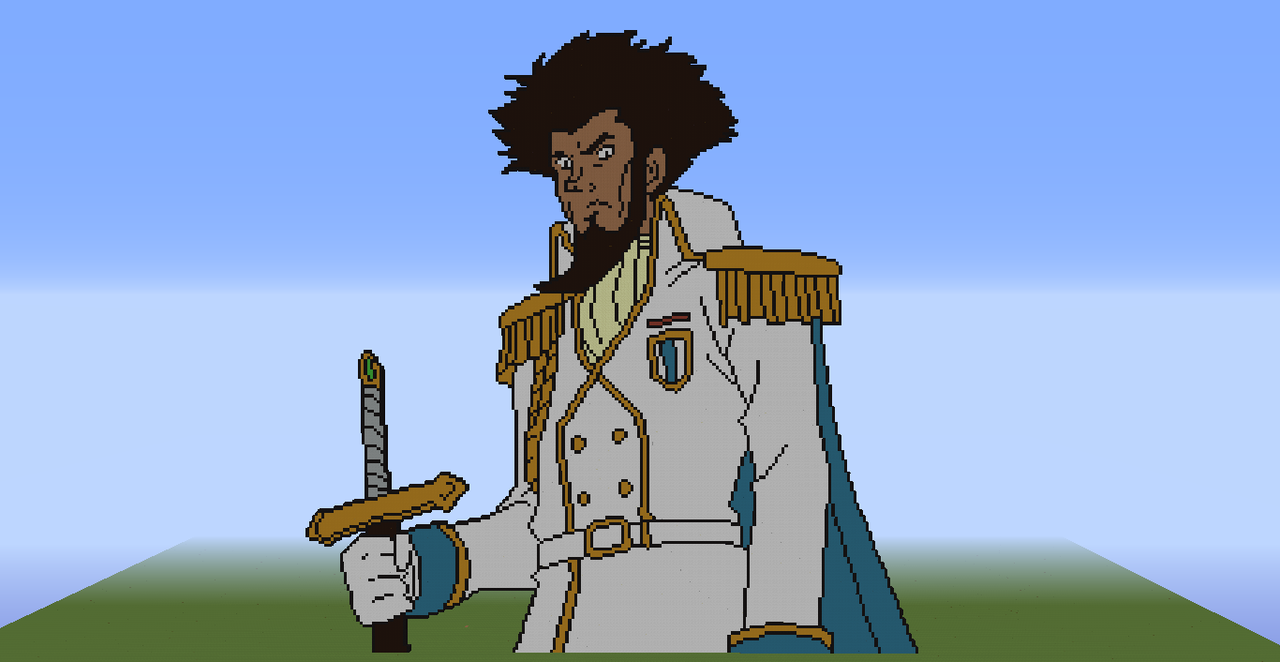 Description: A pixel art picture of a man in a uniform holding a sword and a sword in his hand.