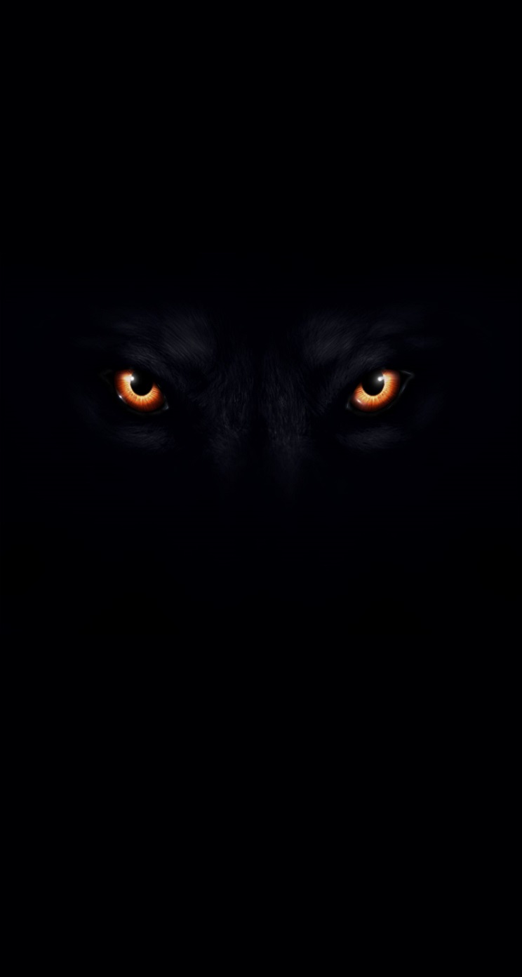 Description: A dark background with a wolf's eyes glowing in the dark.