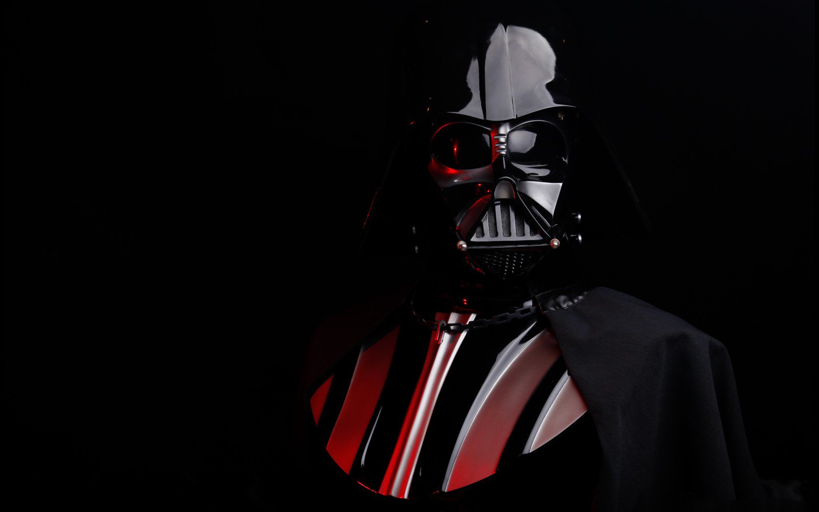 Description: A darth vader mask is shown in the dark room with a black background and a red stripe.