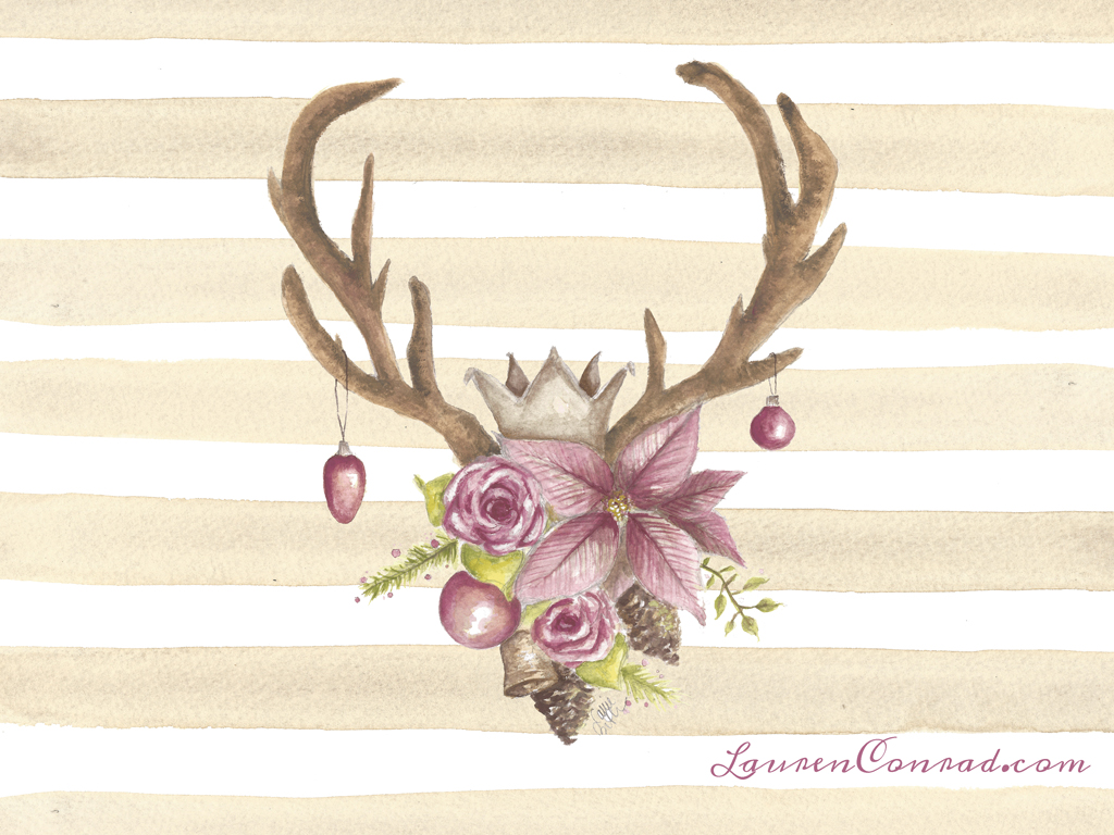 Description: A painting of a deer's antlers with flowers and berries on it's antlers and a crown.