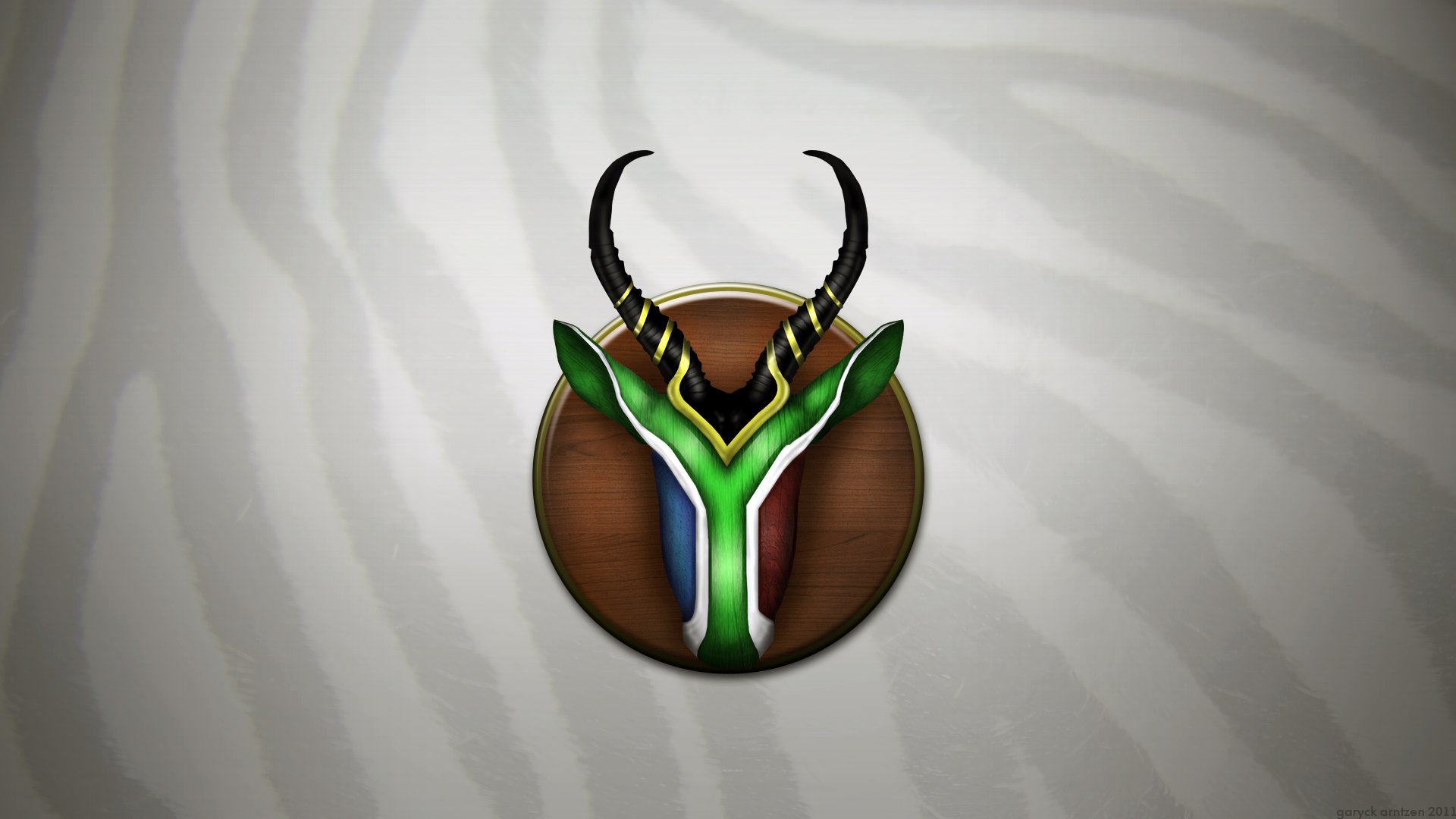 Description: A deer's head with a multicolored pattern on it's face and horns is shown.