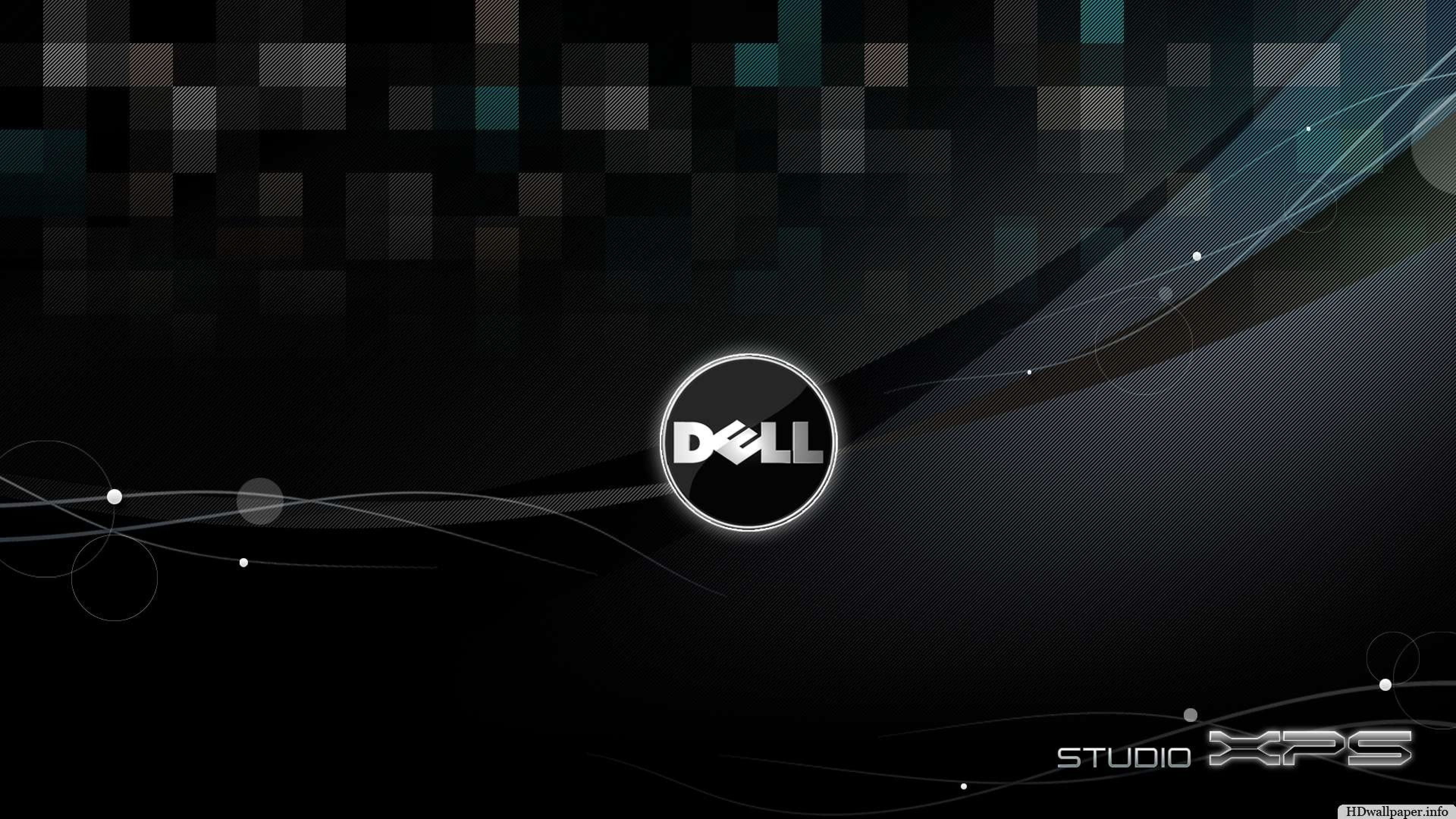 Description: A dell logo is shown on a black background with lines and dots around it and a black background with a white dot.