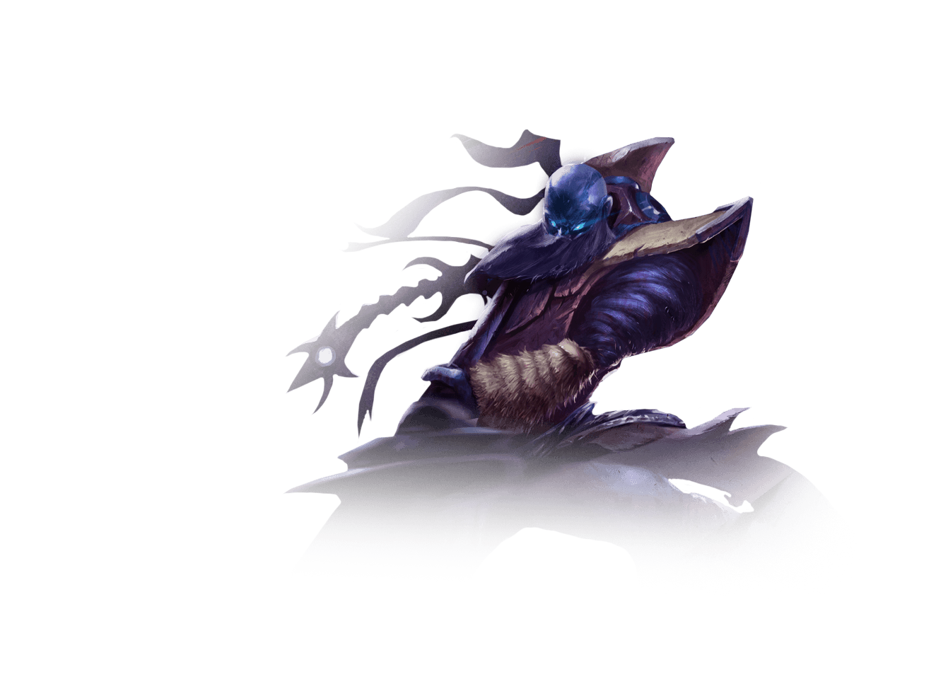 Description: A stylized image of a demon with a blue eyes and a large head with horns and a tail.