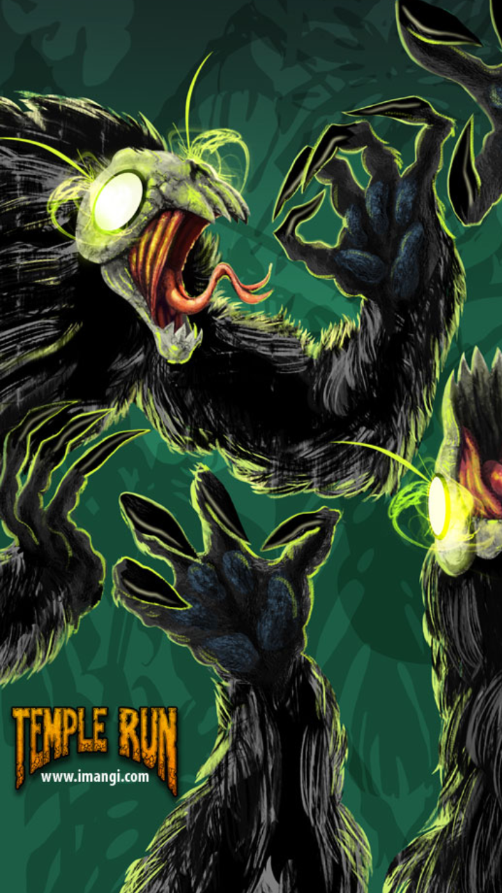 Description: A cartoon of a demon with glowing eyes and a demon like body with a glowing eyeball in its mouth.