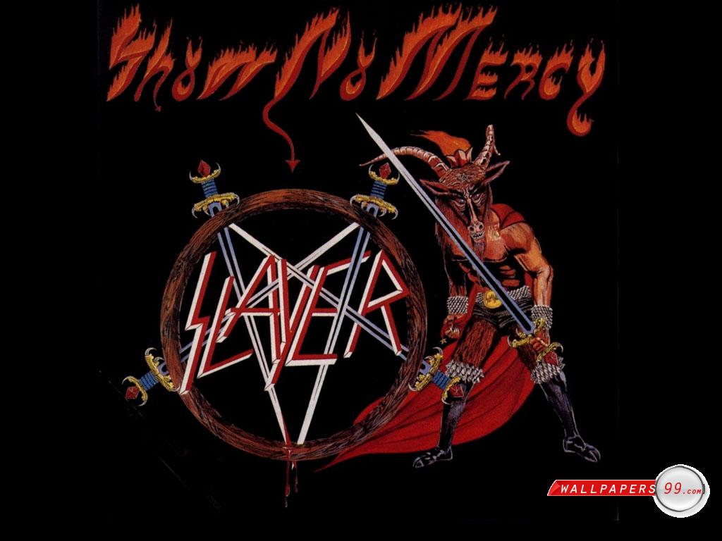 Description: A picture of a demon holding a sword and a pentagramil with the word slayer on it.