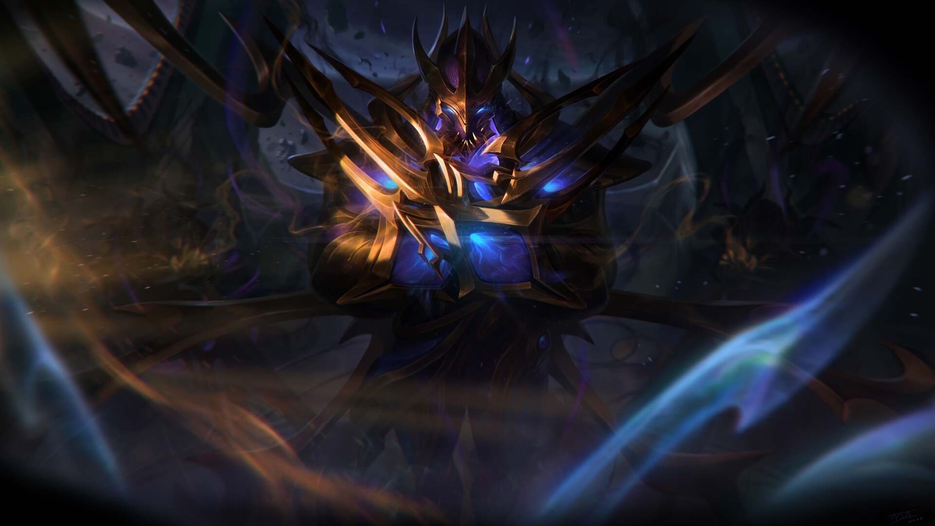 Description: A digital painting of a demonic looking creature with blue eyes and a large.