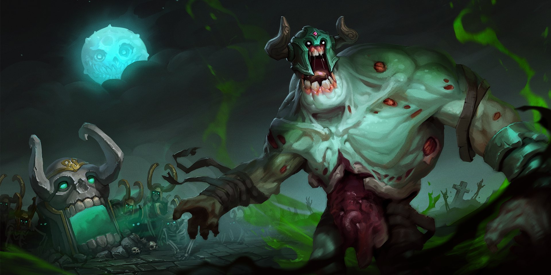Description: A demonic creature with a green light in his mouth and a demon in the background with a glowing green light.