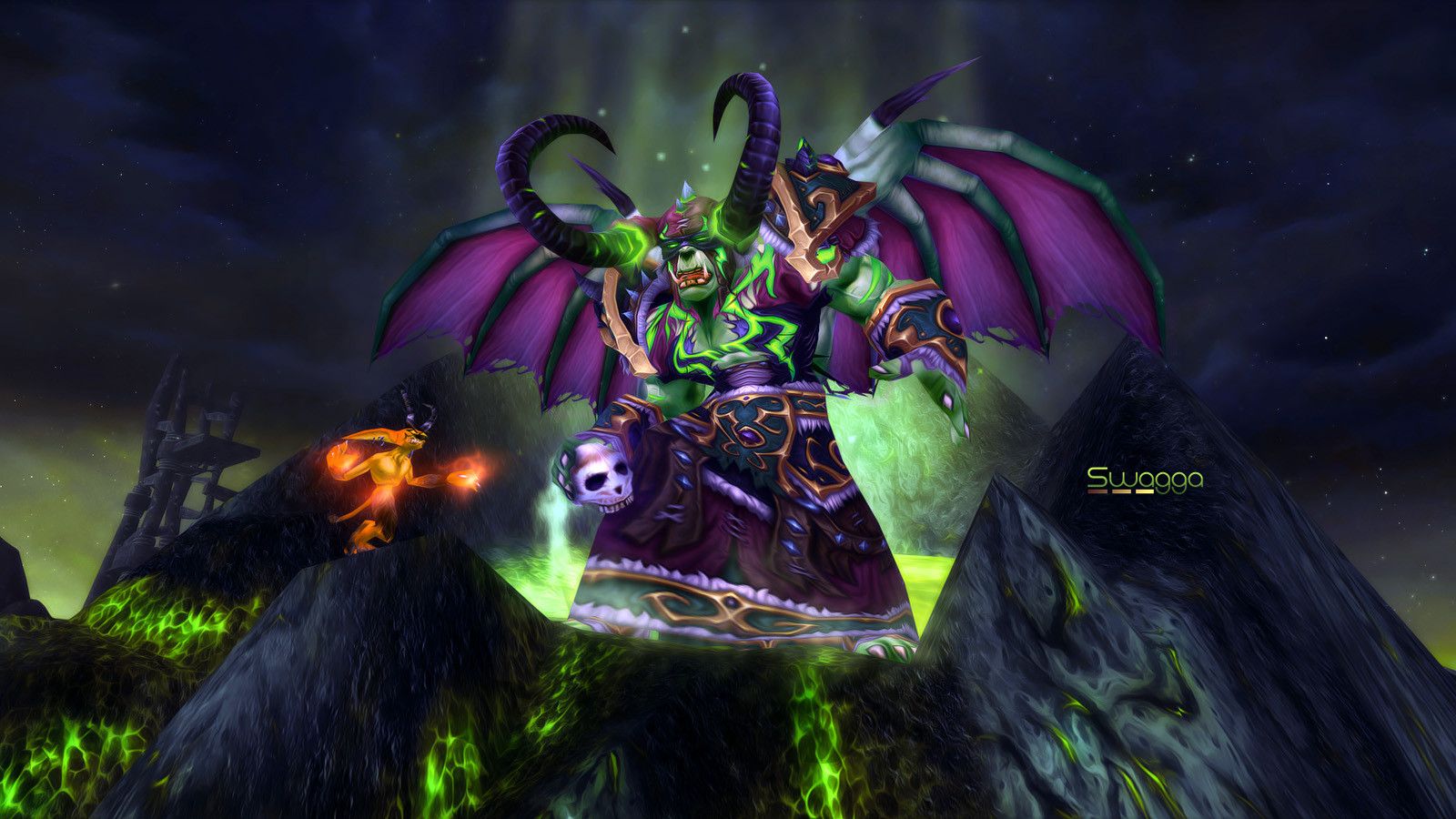 Description: A demonic demon with a skull on a mountain with a skull on it's back and a skull on its chest.