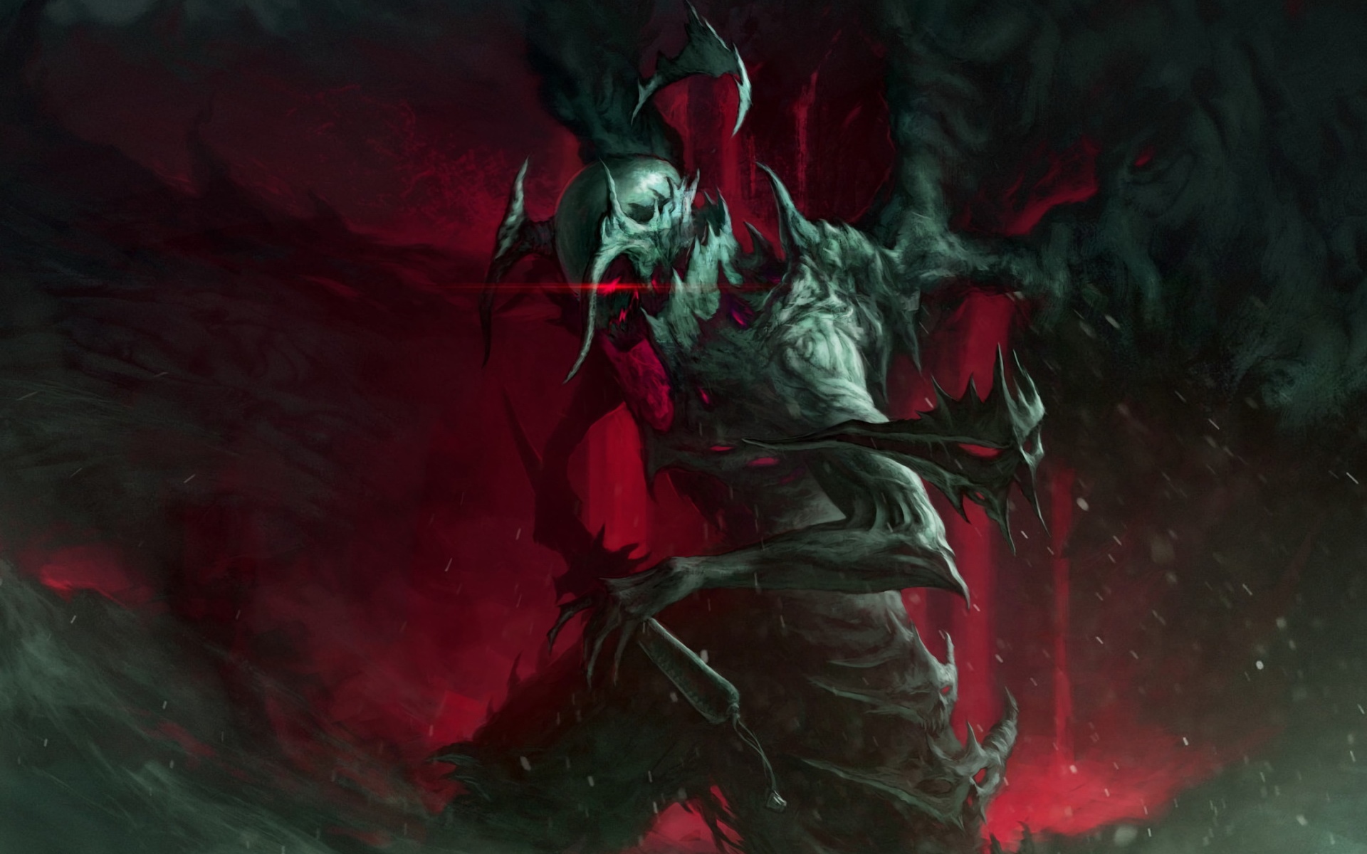 Description: A demonic demon with a sword in his hand and a demon on his back.