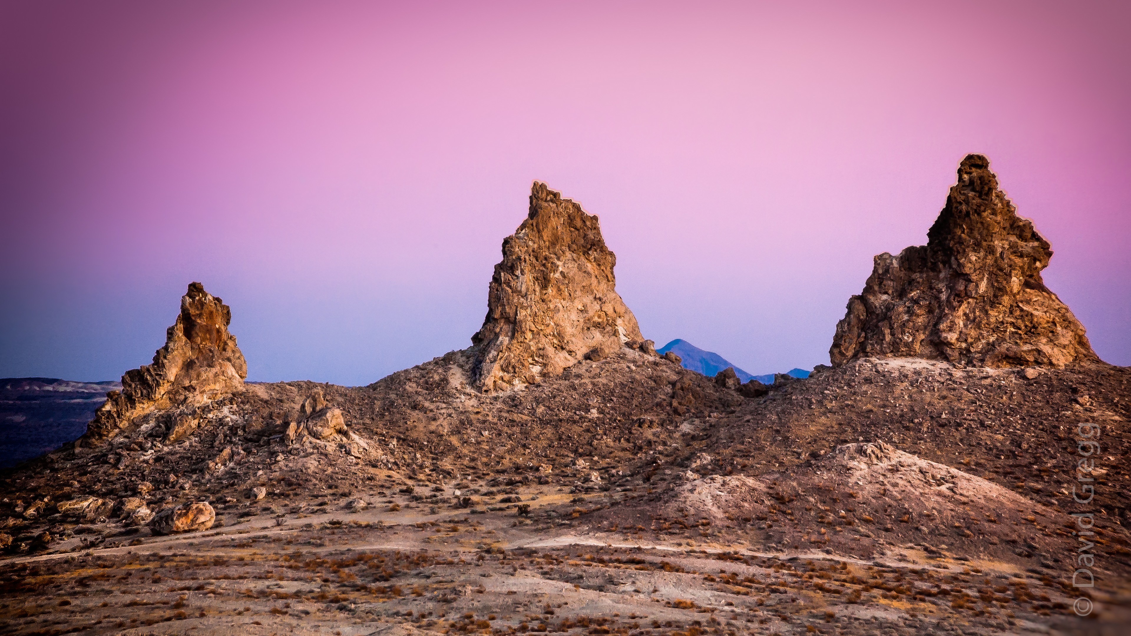 Description: A group of rocks in the desert with a purple sky in the background and a purple sky in the background.