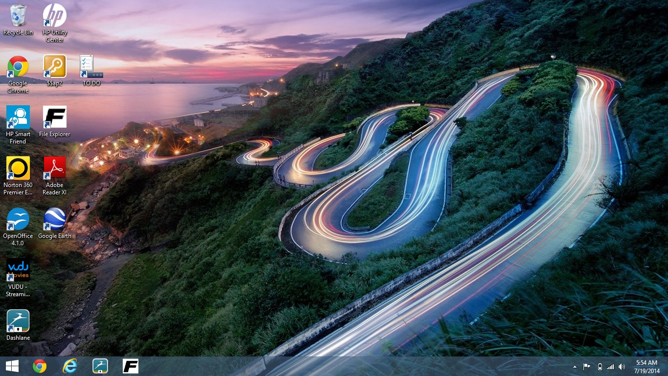 Description: A desktop computer with a road and a mountain in the background with a sunset in the background and a road running along the side of the mountain.