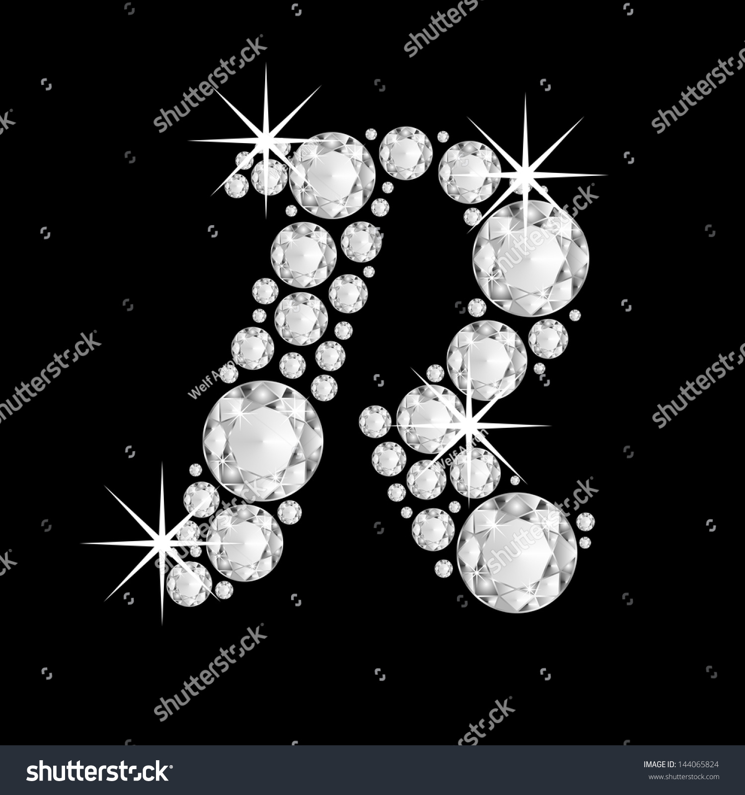 Description: The letter k made up of diamonds and stars on a black background with a black background and white stars.