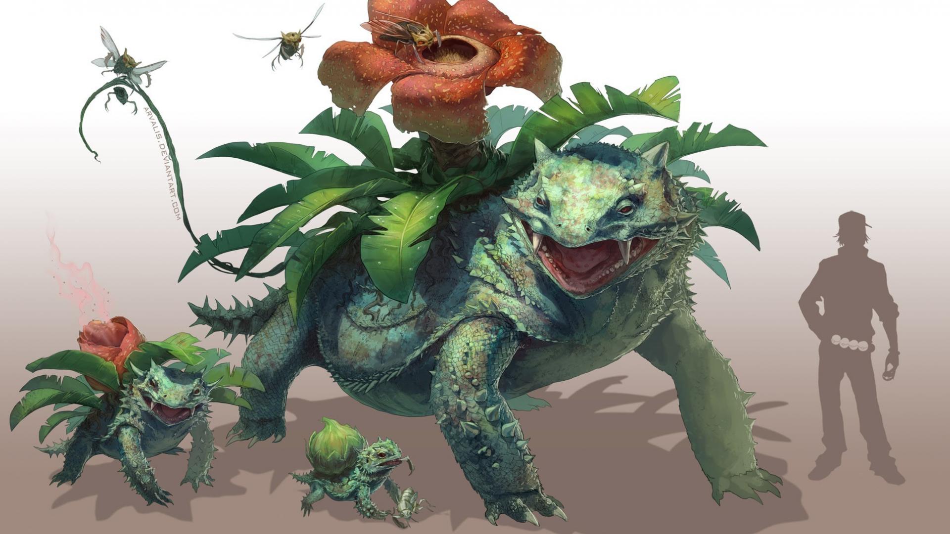Description: A drawing of a dinosaur with flowers on its back and a man standing next to it with a shadow of a man.