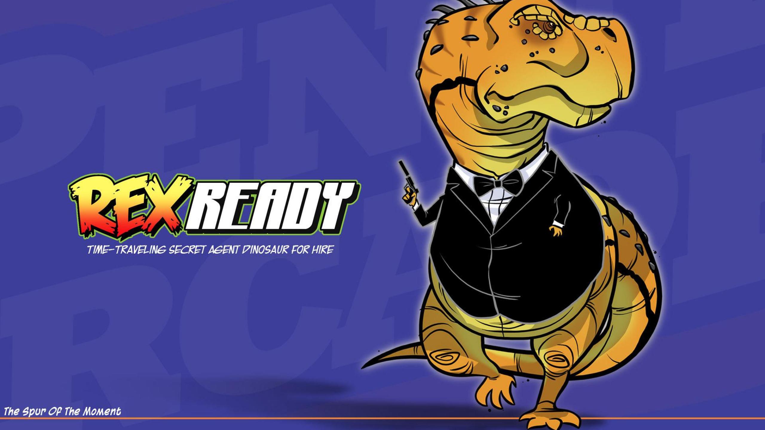 Description: A cartoon of a dinosaur dressed in a tuxedo and bow tie with a microphone in his hand.