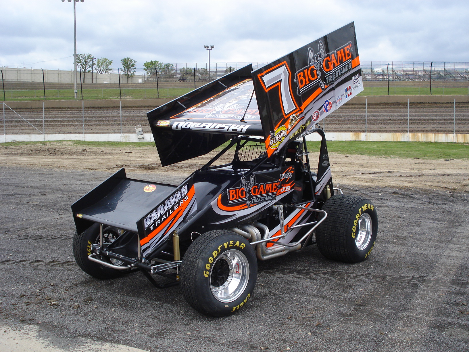 Description: A dirt buggy with a flag on top of it's roof and a flag on the back of it.