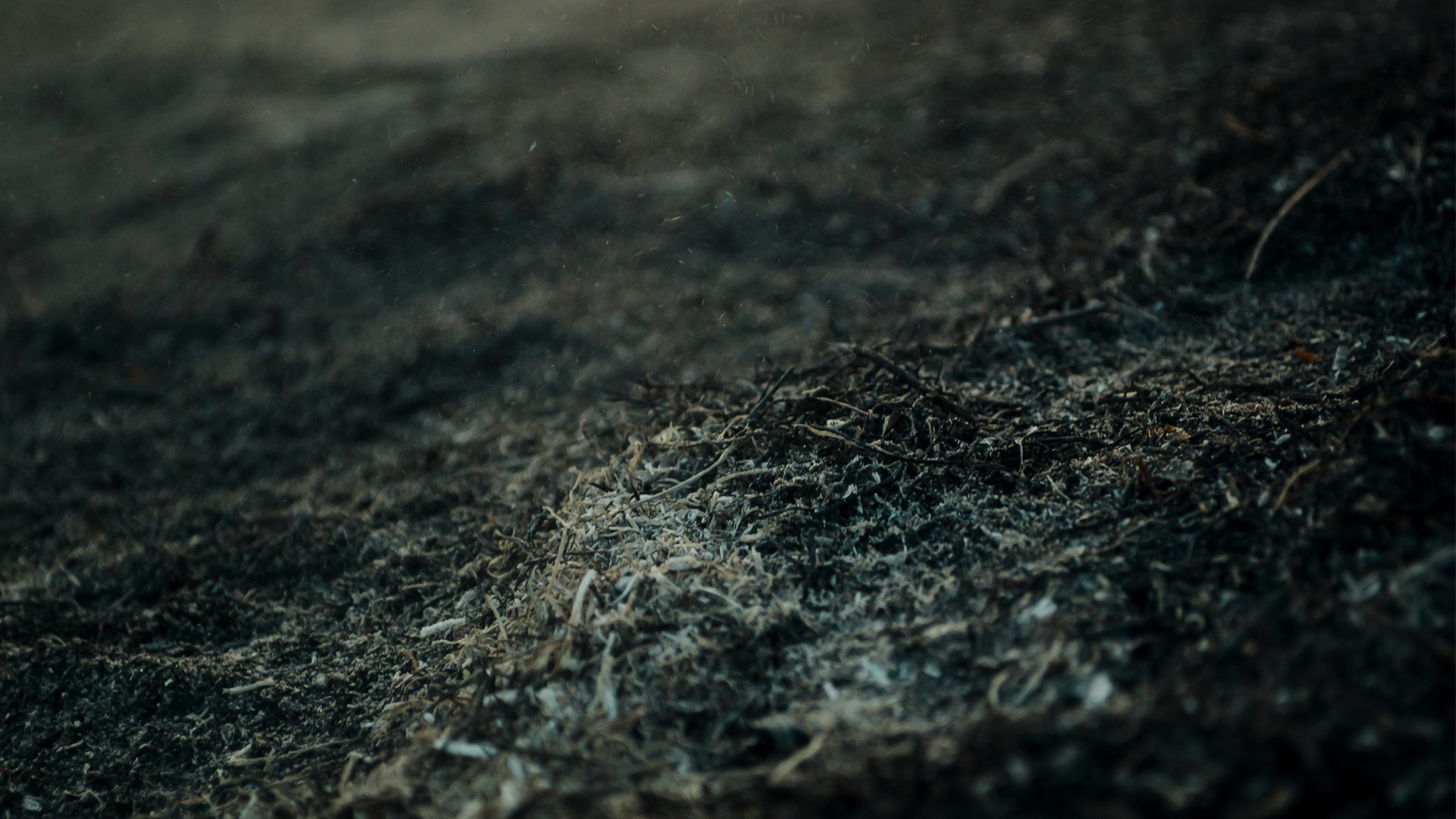 Description: A close up of a pile of dirt with a blurry background of grass and dirt on the ground.