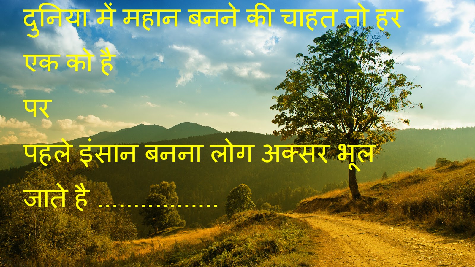Description: A picture of a dirt road with a tree in the middle of it and a sky background with clouds.