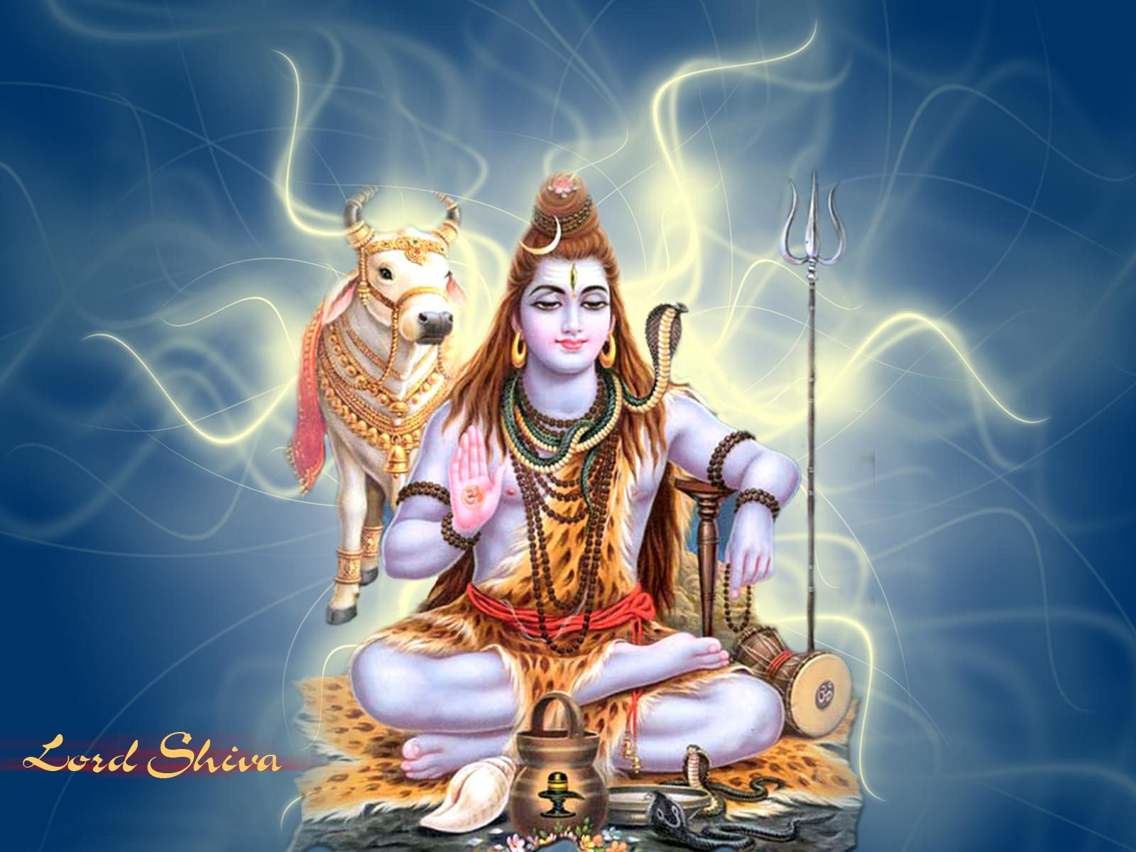 Description: A painting of a god sitting on a rock with a dog on his lap and a blue background with a white border.