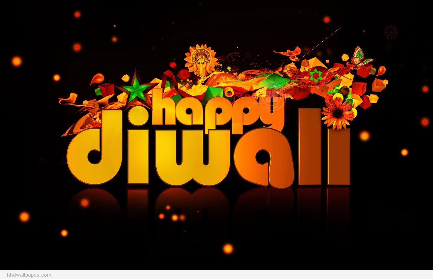 Description: A happy diwali text with flowers and butterflies on it in the dark background with a black background.