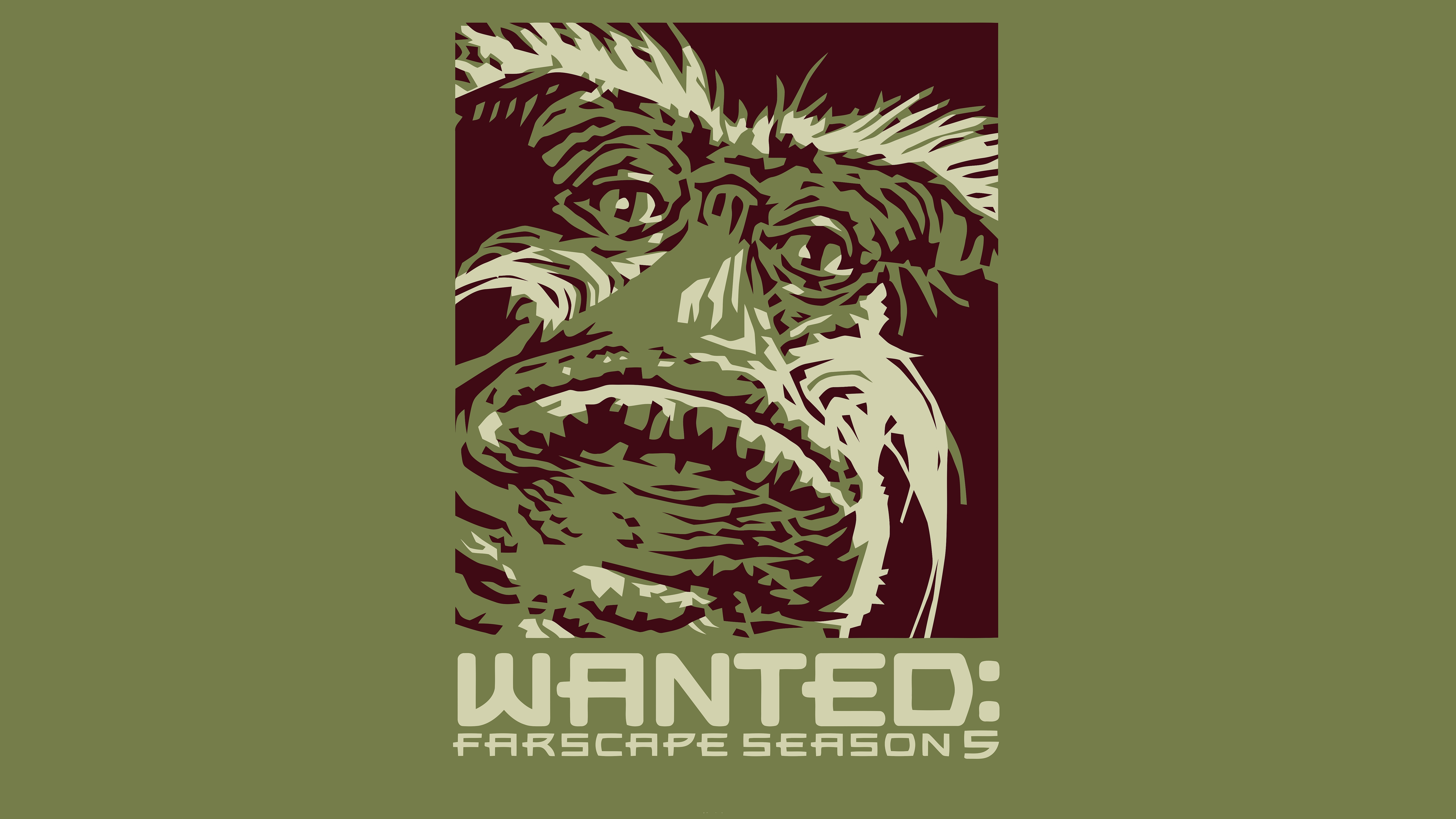 Description: A dog with a big grin on its face and the words wanted in white on a green background with a black border.