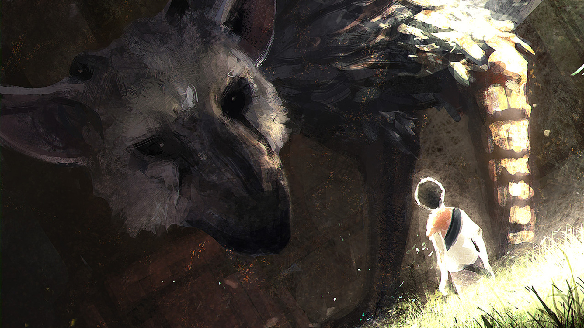 Description: A dog standing next to a large animal in a field of grass and dirt with a bird on its back.