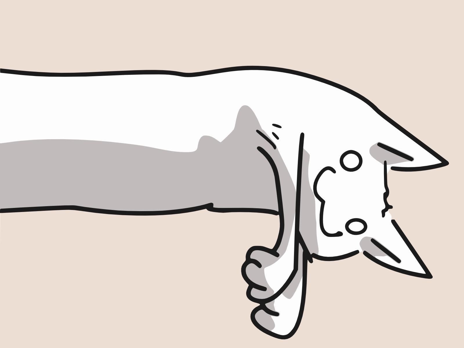 Description: A drawing of a dog with a long tail and a nose that is sticking out of its mouth.