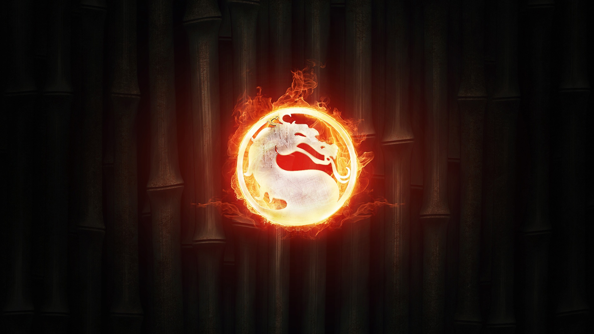 Description: A dragon in a circle of fire on a black background with a curtain behind it and a curtain behind it.