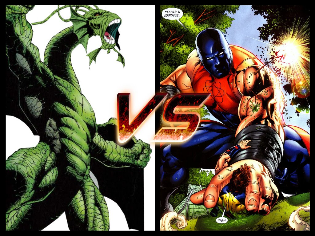 Description: A comic book page with a dragon and a man fighting over another one with a sword and a man with a red shirt.