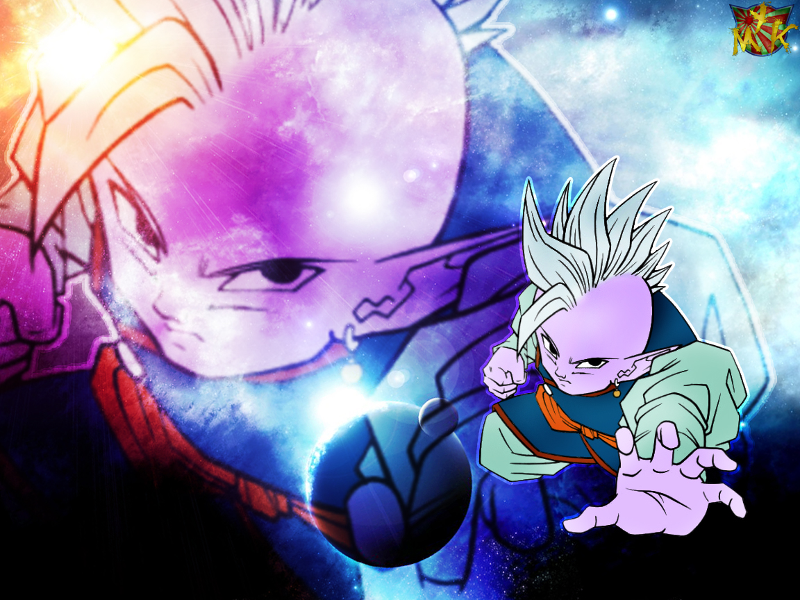 Description: A dragon and a man in space with stars in the background and a blue and purple background with a star burst.