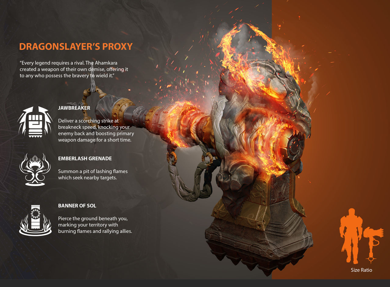Description: A graphic of a dragon slayer's proxix weapon with fire coming out of it's back.