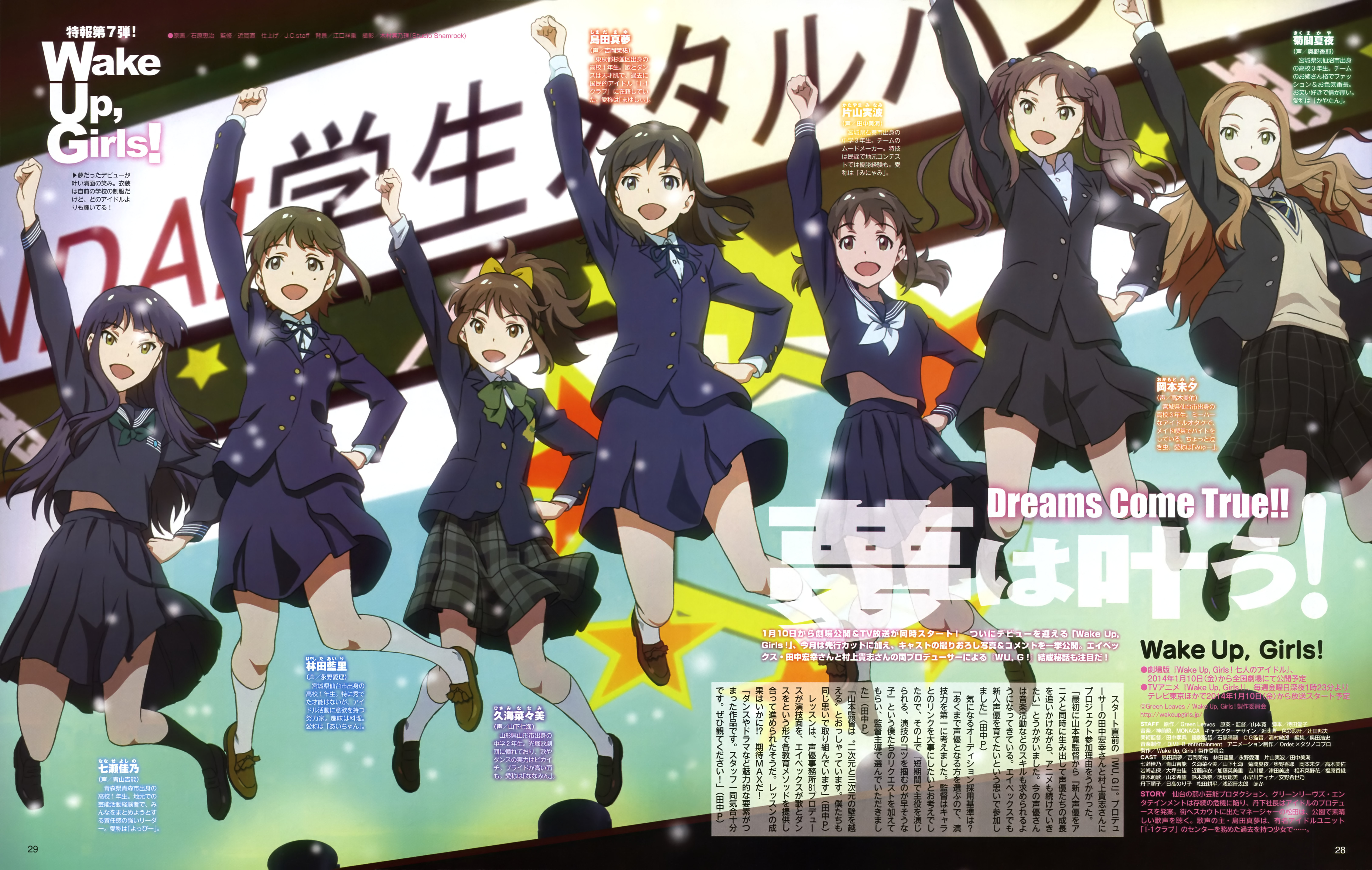 Description: A group of girls in school uniforms are posing for a picture with a sign in the background that says dream come true.