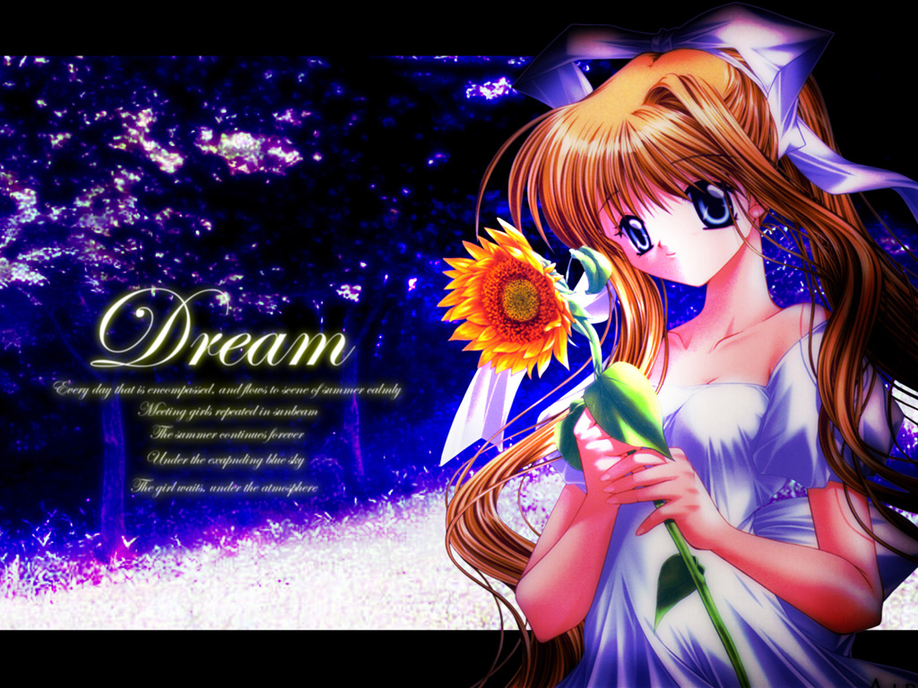 Description: A girl holding a flower and a wand in her hand with a dream written on it in the background.
