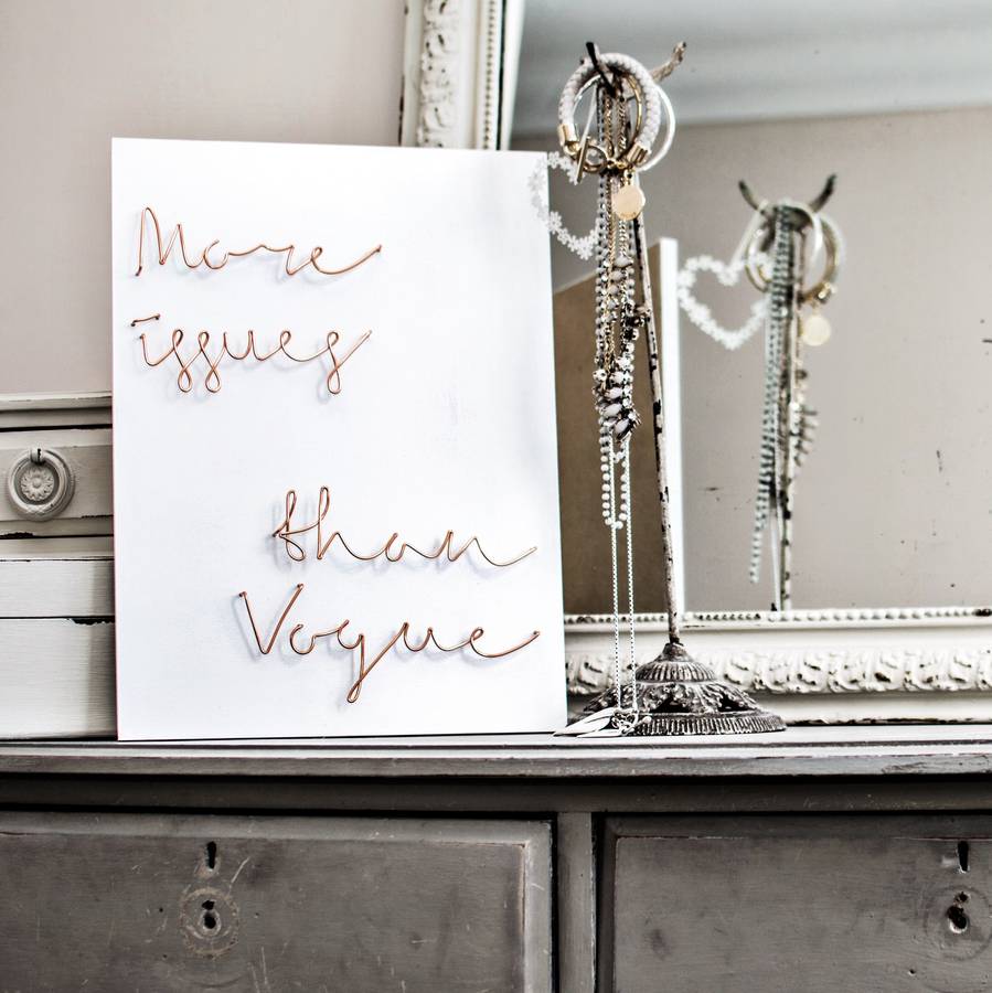 Description: A sign that is on a dresser near a mirror and a mirror frame with writing on it that says.