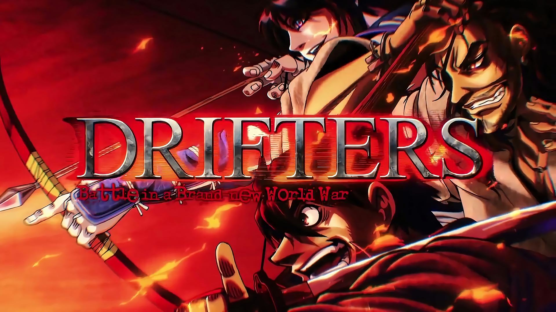 Description: A video game title for drifters featuring a man with a sword and a demon with a sword in his hand.