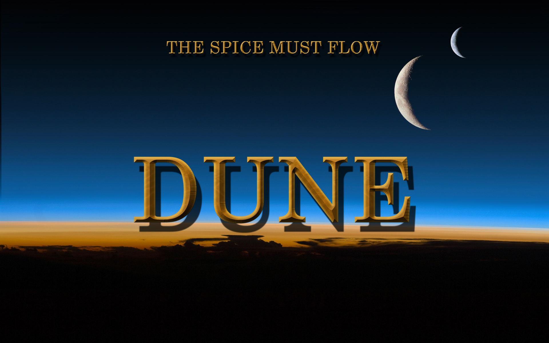 Description: A picture of the word dune with a half moon in the background and a half moon in the sky.