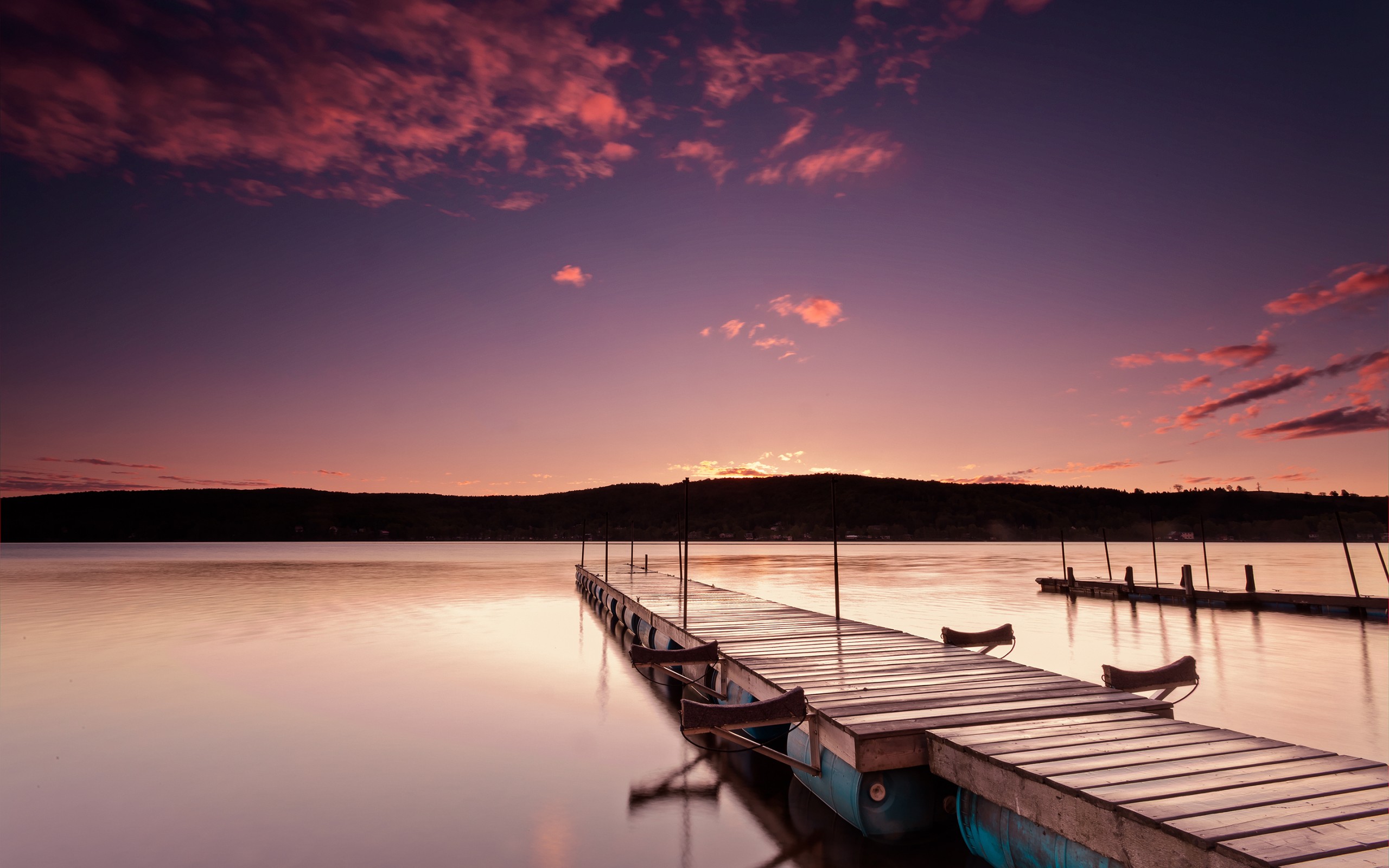 Description: A dock with a few boats sitting on it at sunset or dawn or dawn or dawn.