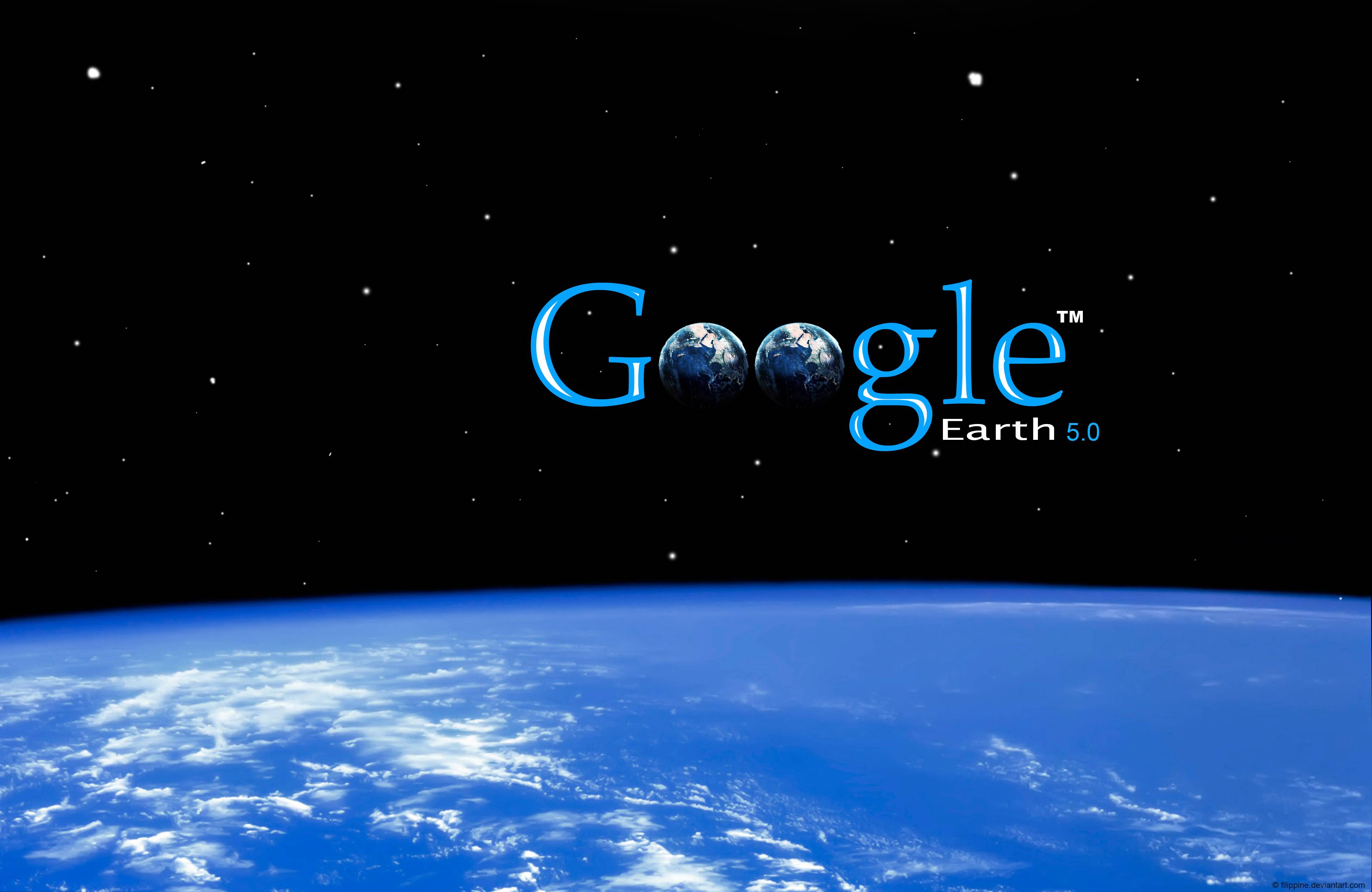 Description: The earth with the google logo above it and the earth in the background with stars and clouds in the sky.