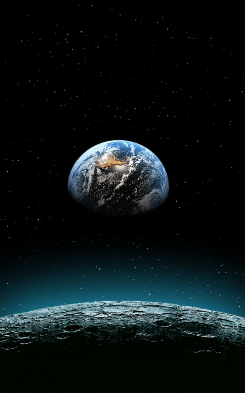 Description: A view of the earth from space with stars in the background and a black background with a blue hue.